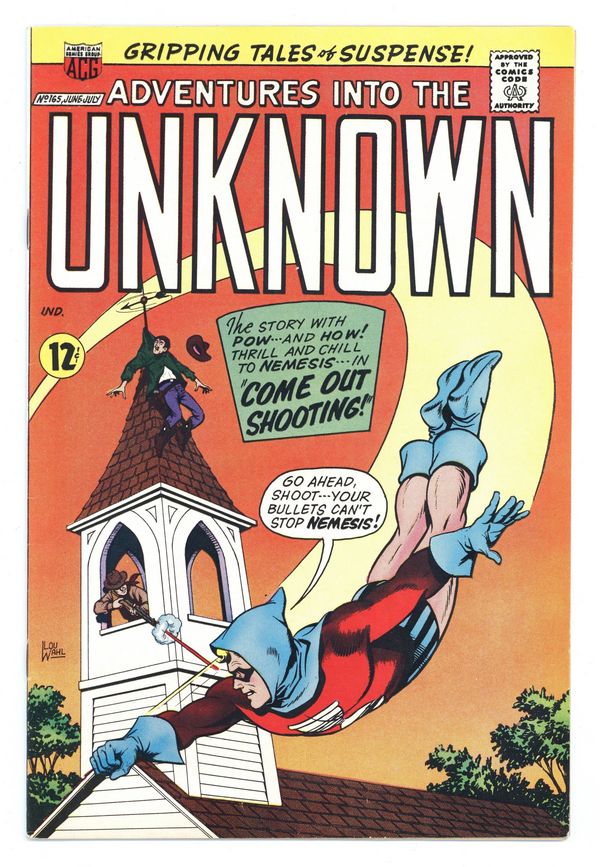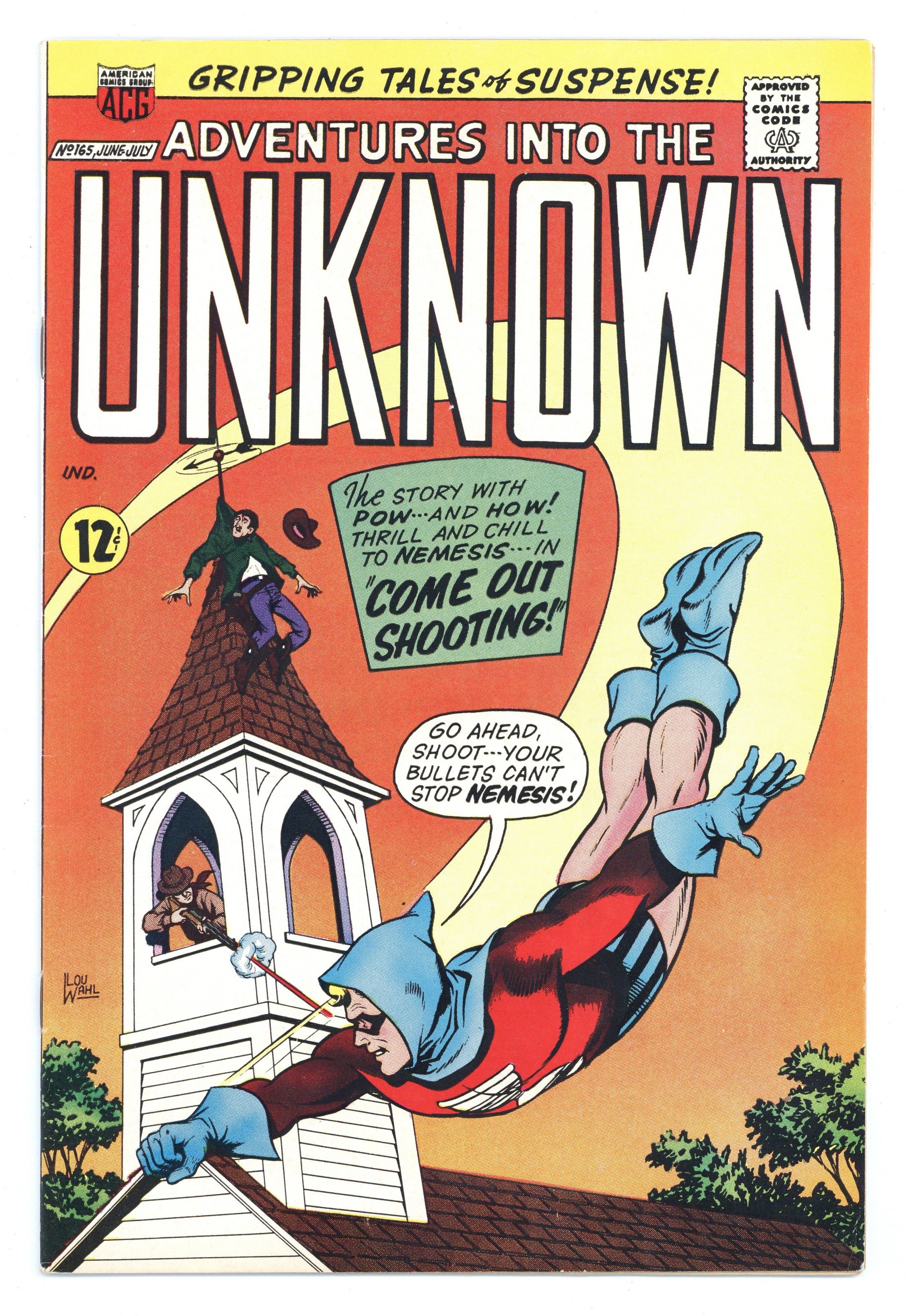 Edited by Richard E. Hughes. Cover by Kurt Schaffenberger. Stories by Richard Hughes (as Shane O'Shea), Chic Stone, John Buscema, and Pete Costanza. Spine-chilling tales of suspense, horror, and the supernatural—prepare yourself for Adventures into the Unknown! 36 pages, full color. Cover price $0.12.