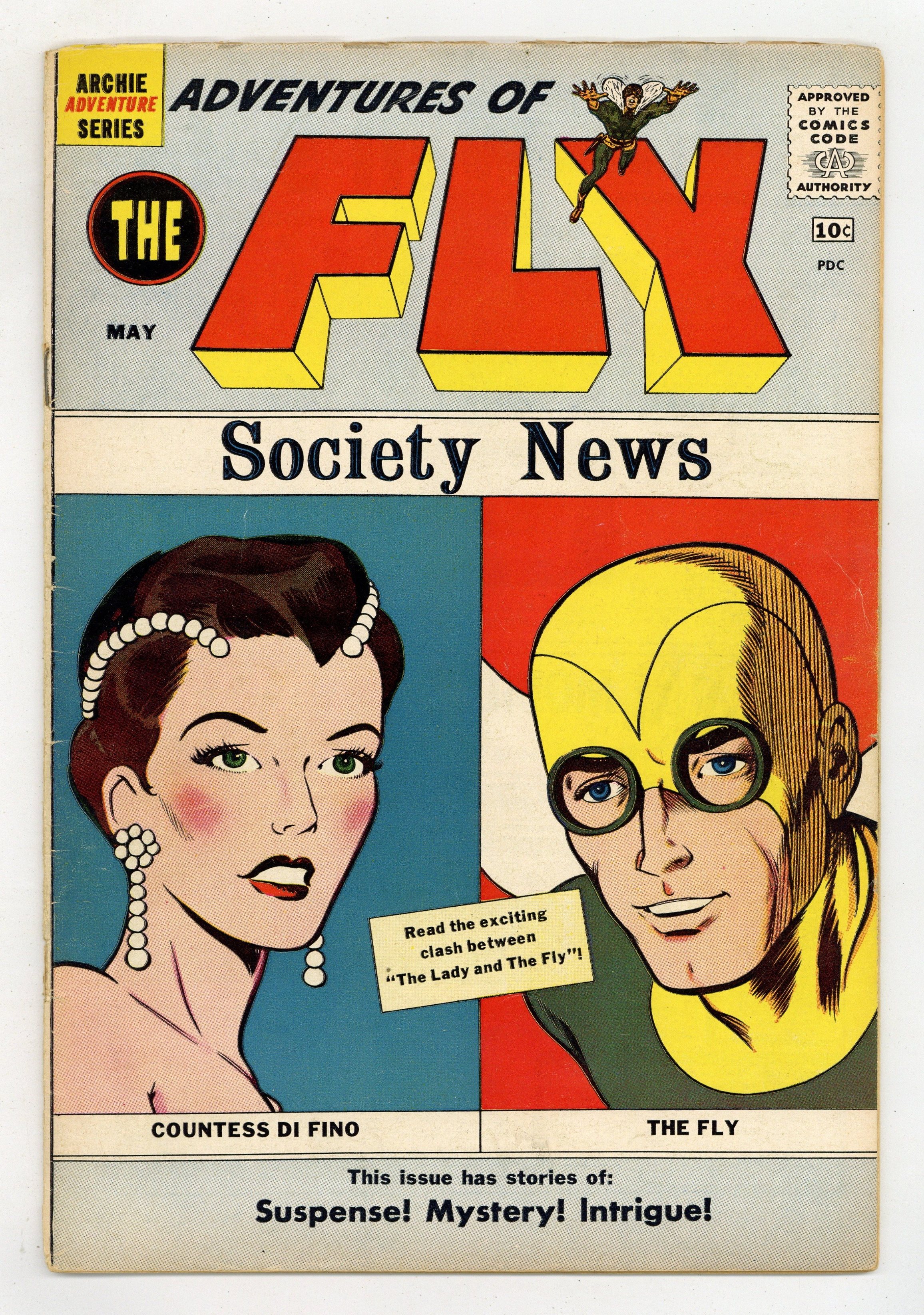 Published May 1960 by Archie Publications.$12.00Edited by Victor Gorelick. Cover by John Giunta. Stories by Robert Bernstein and John Giunta. Archie Comics amiable and agile super-hero The Fly battles an assortment of nefarious villains, including The Moon Men. Bobby Bell's Judo Page with The Shield. 36 pages, full color. $0.10. Cover price $0.10.