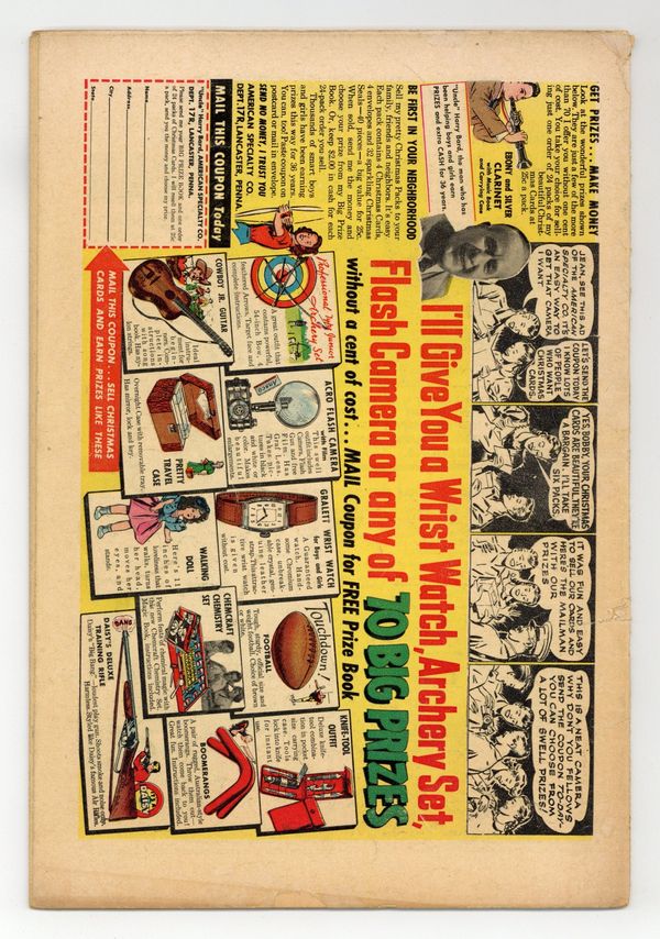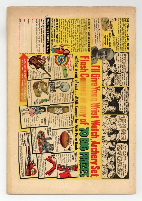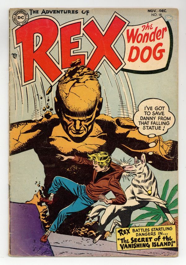 "The Secret of the Vanishing Island!" As a mysterious island sinks into the ocean, Rex rescues a stranded Major and Danny Dennis. Rex also assists in destroying an evil idol. Also includes: "The Case of Bobo's Bankbook!" (starring Detective Chimp); "Everglades Swamp-Trap!"; and "Prehistoric Dogs." Script by Robert Kanigher and John Broome, pencils by Gil Kane and Carmine Infantino, inks by Bernard Sachs. Cover by Kane and Sachs. Cover price $0.10.