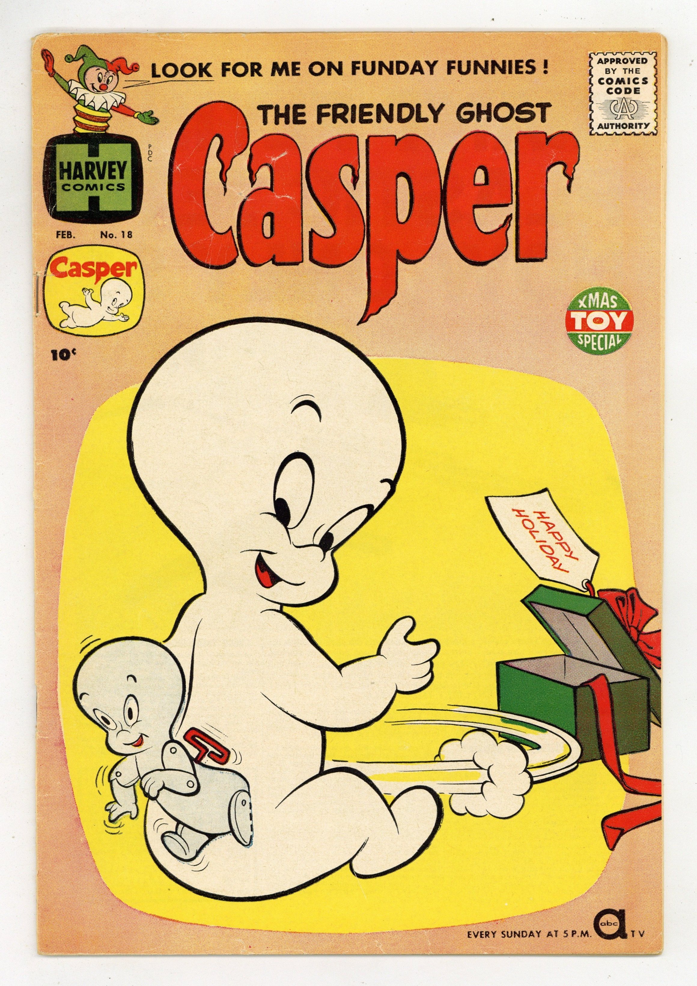 Cover by Warren Kremer. Harvey presents the adventures of Casper in the long-running series sometimes called The Friendly Ghost Casper. Casper brightens up an old painting from the inside. Plus vintage ads for Slinky, the Flexible Flyer, and Western TV show memorabilia. Casper the Friendly Ghost; Spooky. 36 pages, full color. Cover price $0.10.