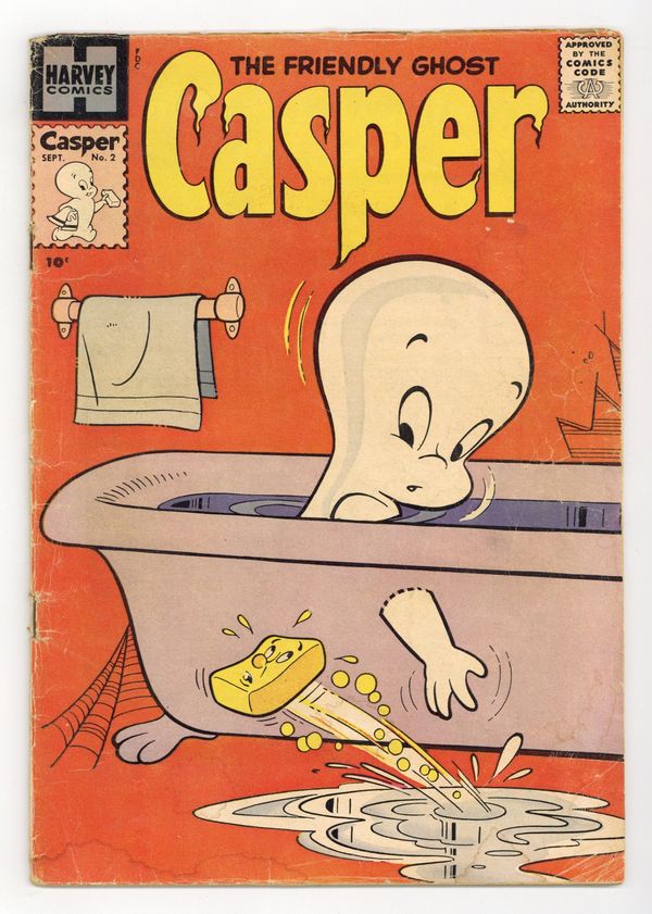 Cover pencils by Warren Kremer. "Red Robbing Hood," pencils by Warren Kremer; In the Enchanted Forest, Casper meets Red Robbing Hood and his Merry Men: Little Don, Alan A Wail, and Friar Floop. Untitled The Ghostly Trio story. "The Battle of Wits," pencils by Warren Kremer; Casper, Red Robbing Hood and his Merry Men enter a tournament at Sir Wolfly's castle. "The King Gets Crowned," pencils by Warren Kremer; Casper tricks Sir Wolfly into letting down the drawbridge so Red Robbing Hood can return to his castle and become king. Spooky house ad. Blondie and Dagwood house ad. "The Faker," art by Howard Post; Spooky has a sore throat, so he asks his cousin Beau Braggart to take his place. Popeye Color TV Set ad. 36 pages, full color. Cover price $0.10.