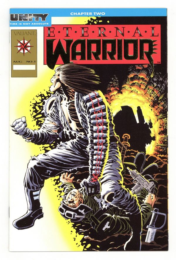 Gold Embossed Edition - the word "Warrior" has raised, gold lettering. According to the ValiantFans.Com website, the Gold Embossed version was created to replace copies of the dealer incentive (gold flat version) that were accidentally distributed for re-orders as if it were the regular version.