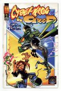 $15.00Regular cover by Ethan Van Sciver. Story and art by Trent Kaniuga and Ethan Van Sciver. A crossover between two future superstar artists, Kaniuga and Van Sciver. Creeds foe Disorder and CyberFrogs enemy Deathfly give teen Mark Farley the Myriad Amulet. It corrupts him into the sinister Schizophrenzy, making him unable to return to the Dreamworld he created and rules as Creed. With Disorder ruling the Dreamworld, only one being can save two worlds…and his name is Cyberfrog. 24 pages, B&W. Cover price $2.95.
