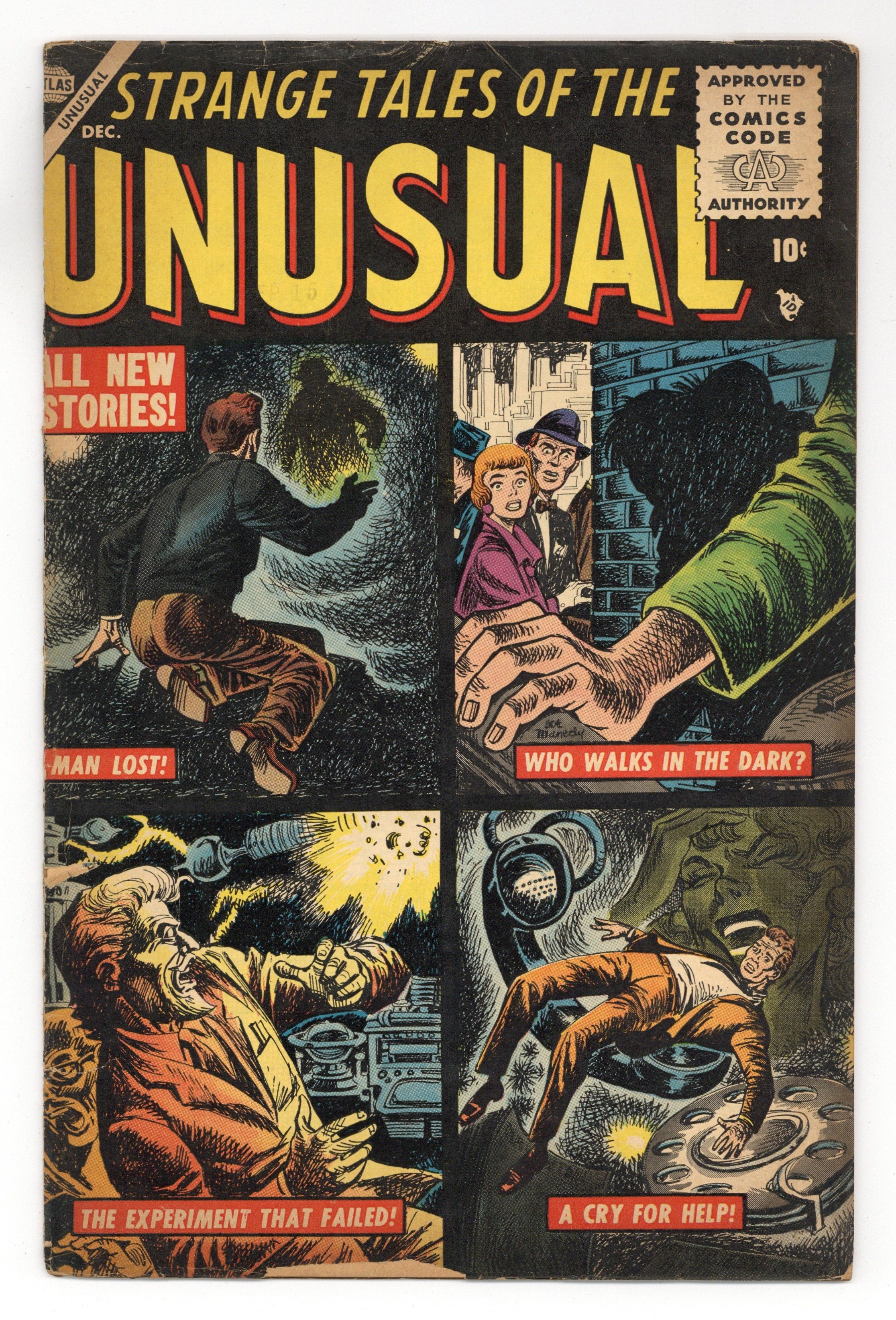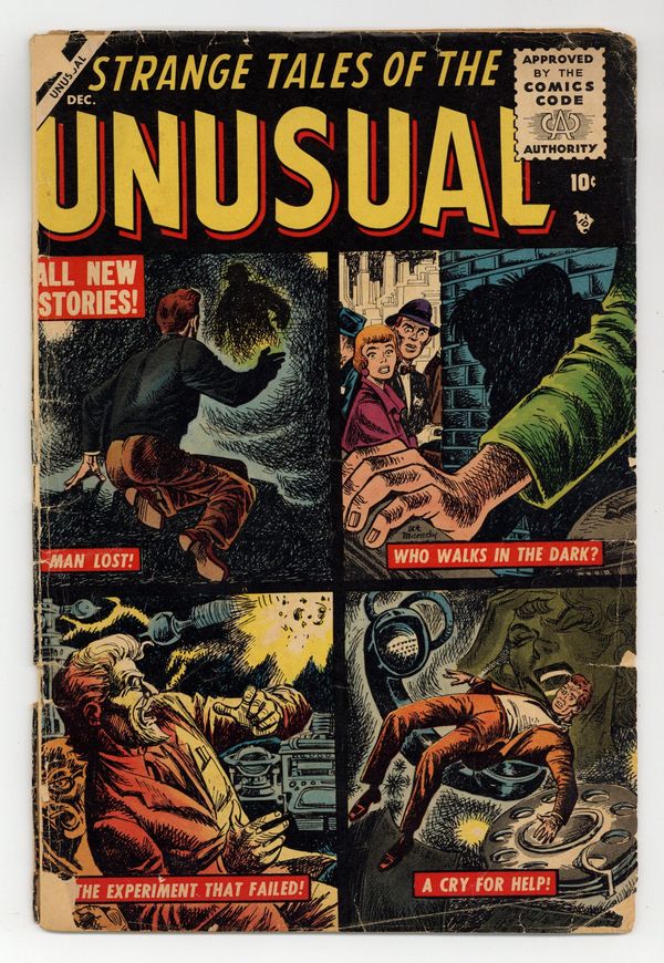 Cover pencils by Joe Maneely, inks by Carl Burgos. Man Lost!, art by Bob Brown; A scientist who has invented a time machine has an unscrupulous brother who plans to use it for his own profit. The Sorcerer text story, art by Joe Maneely. Who Walks in the Dark?, art by John Romita, Sr. The Gift, art by Bob Powell. Cry for Help!, art by Robert McCarty. The Experiment That Failed, art by Don Heck. 36 pgs. $0.10. Cover price $0.10.