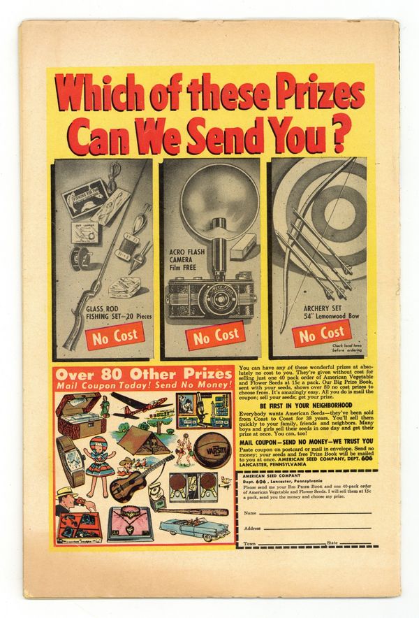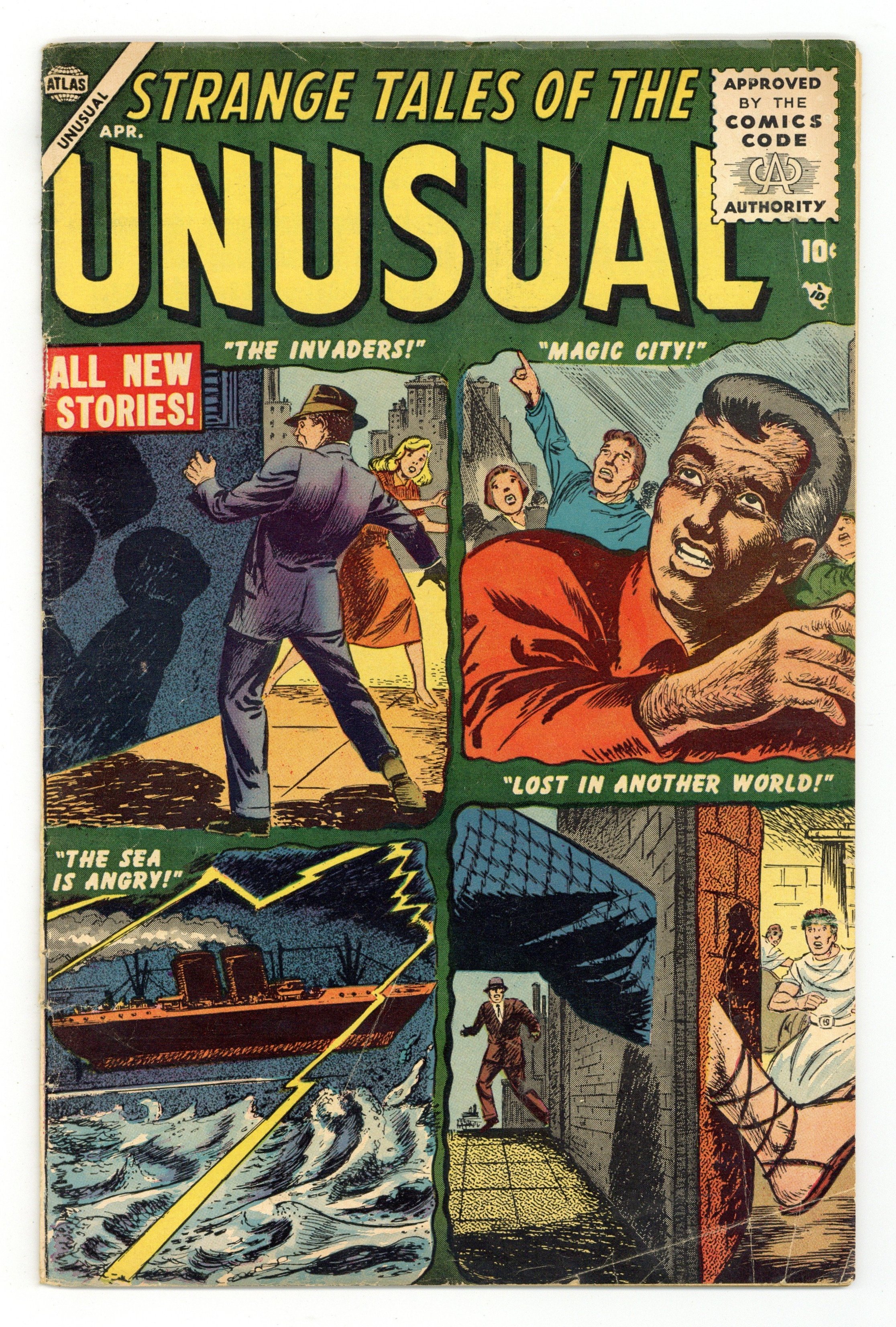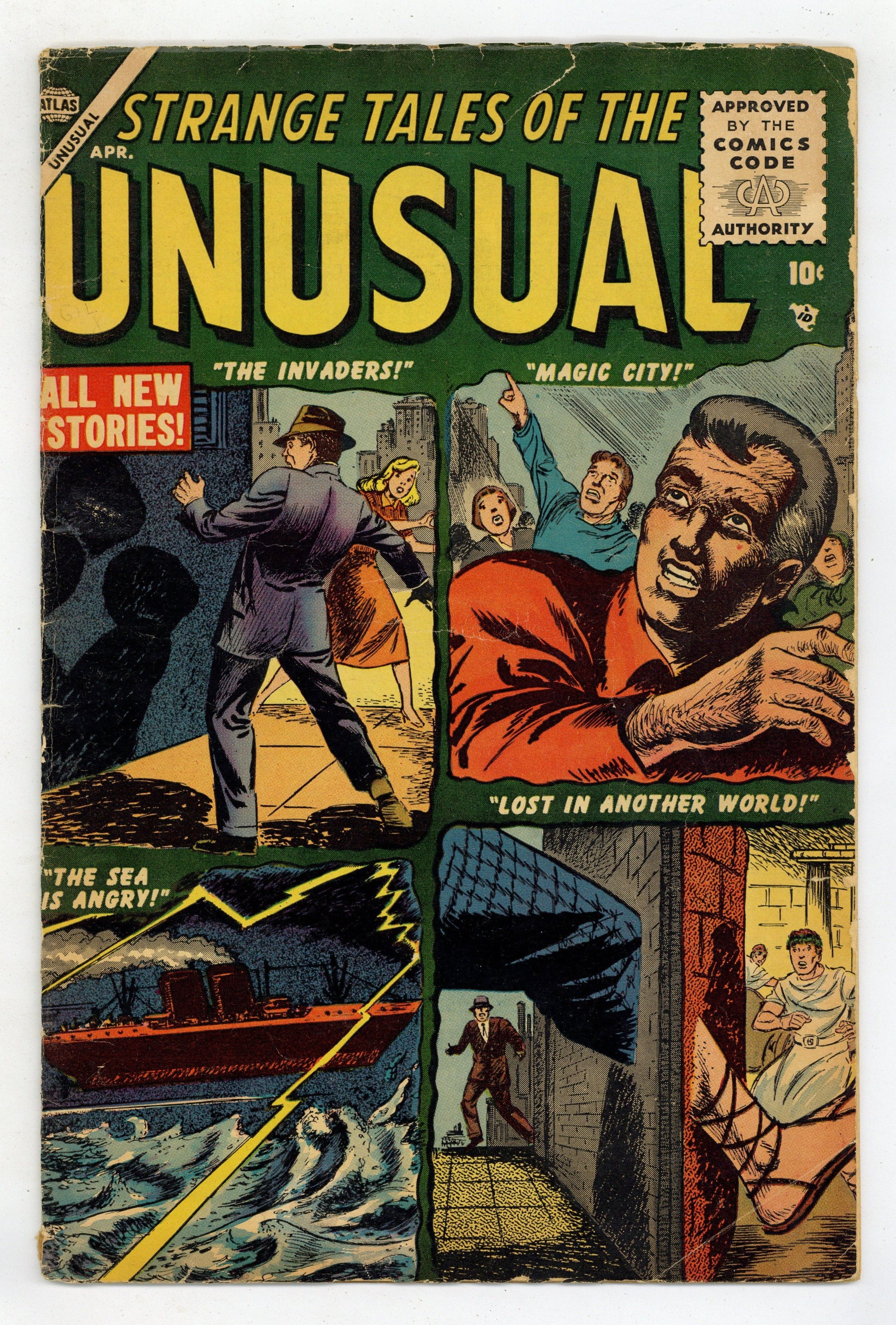 Cover art by Sol Brodsky. The Man with the Little Black Box, pencils by Ross Andru, inks by Mike Esposito. The Invaders!, art by Al Williamson. The Sea Is Angry!, pencils by Robert Q Sale. The Talent text story; A tramp can't convince a farm family that his talking dog is not a ventriloquist's trick. The Magic City, pencils by Bill Benulis. Someone Is Watching, art by Doug Wildey. Lost in Another World!, art by Dick Ayers. 36 pgs. $0.10. Cover price $0.10.