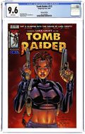 Diamond Retailer Variant Cover by Andy Park. TOP COW COMICS. Story by Dan Jurgens Pencils by Michael Lopez and Eric Basaldua. Inks by Livesay and Marlo Alquiza. Delving into Lara's origin, the Tomb Raider 1/2 issue is sure to please fans of the statuesque beauty. Questing for a legendary relic, Lara must stay alive long enough to make amends for an error from her past. Eloquently illustrated by the talents of Michael and Eric Basaldura and surrounded with a brand new cover by series artist Andy Park, this special half issue is sure to find its way into your heart. Cover price $2.95.
