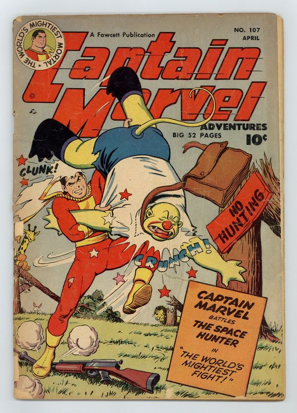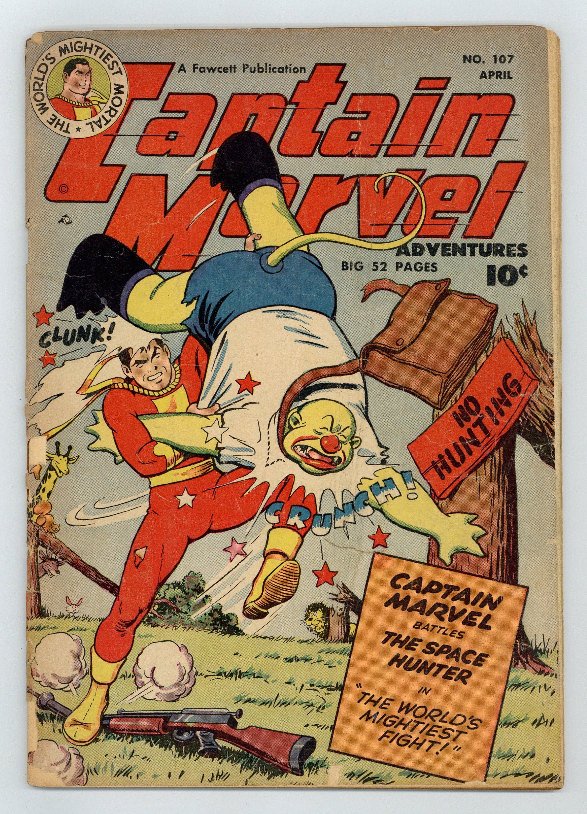 Cover by C.C. Beck. Stories by Otto Binder, Al Liederman, Howard Boughner and unknown. Art by C.C. Beck, Pete Costanza, Al Liederman and Howard Boughner. Captain Marvel battles the Space-Hunter in "The World's Mightiest Fight" by Otto Binder and C.C. Beck. Captain Marvel also stars in: "Sivana's Better Self" with art by Pete Costanza; "Captain Marvel Helps WHIZ Get Color Television" by Otto Binder and Pete Costanza; and "The Man Who Stole Dirt" by Otto Binder and Pete Costanza. Plus: Captain Kid in "Tripped by a Boat Trip" by Al Liederman; Headline Harry tale "The Gift" by Howard Boughner; Jon Jarl in the 2-page text story "Time Trip" with script by Otto Binder (as Eando Binder); and 1-page Tootsie Roll ad "Captain Tootsie Catches Run-Away Horse" with art by Bill Schreiber. 52 Pages, Full Color. Cover price $0.10.