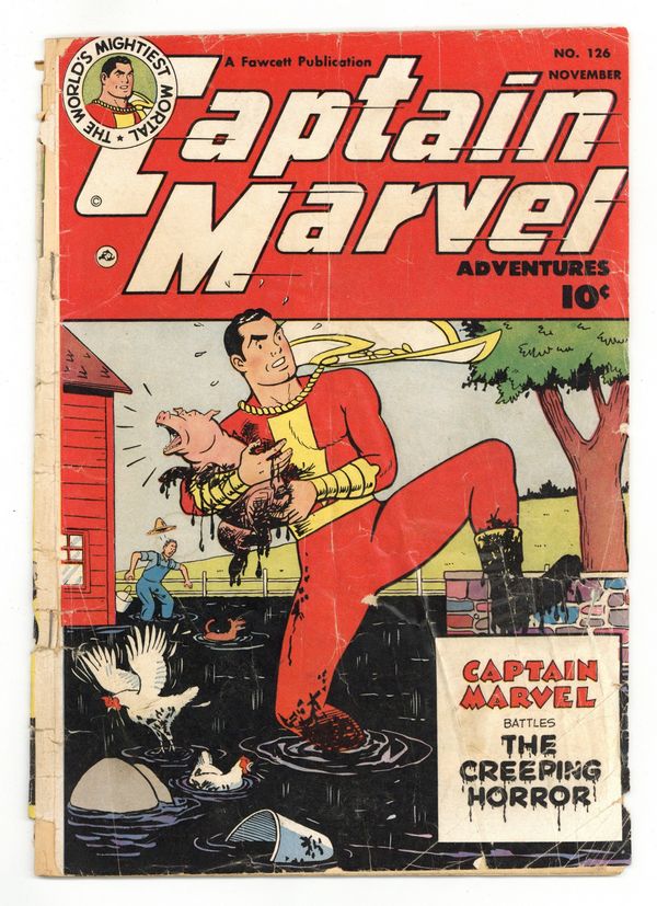 Cover by C.C. Beck. Stories by Otto Binder and unknown. Art by C.C. Beck and unknown. Captain Marvel (Billy Batson) stars in: "The Great Heat Age" by Otto Binder and C.C. Beck; "The Creeping Horror" with story by Otto Binder and pencils by C.C. Beck; and "Mr. Tawny's Fight for Fame" by Otto Binder and C.C. Beck. Plus: Captain Kid in "Easy Money"! And: Jon Jarl in the 2-page text story "The Space Swindle" with script by Otto Binder (as Eando Binder). 36 Pages, Full Color. Cover price $0.10.