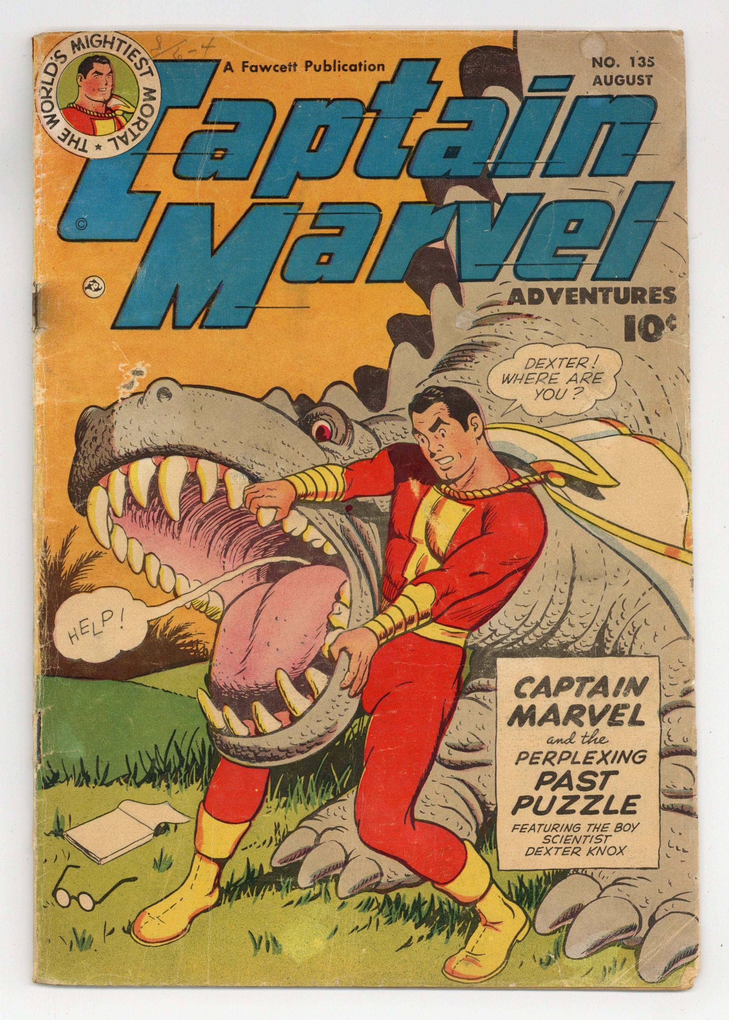 Cover by C.C. Beck. Stories by Otto Binder and unknown. Art by Al Liederman and unknown. Captain Marvel (Billy Batson) stars in: "The Mystery of the Space Switch" with story by Otto Binder (Dexter Knox appearance); "The Microbe Menace" with story by Otto Binder; and "The Perplexing Past Puzzle" with story by Otto Binder (Dexter Knox appearance). Plus: Captain Kid in "The Outboard Overboard Mystery" with art by Al Liederman. And: Jon Jarl in the 2-page text story "Space Lighthouse" with script by Otto Binder (as Eando Binder). 36 Pages, Full Color. Cover price $0.10.