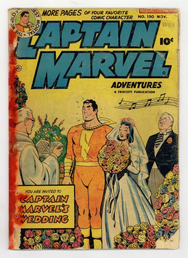 Final issue. Cover by C.C. Beck. Stories by Al Liederman and unknown. Art by C.C. Beck and Al Liederman. Captain Marvel (Billy Batson) takes on Sivana (in the villain's last Golden Age appearance) in a 4-part tale with art by C.C. Beck: "The World of Too Many Sivanas Chapter 1: I Conquer Africa"; "The World of Too Many Sivanas Chapter 2: I Conquer Billy Batson"; "The World of Too Many Sivanas Chapter 3: I Conquer Captain Marvel!"; and "The World of Too Many Sivanas Chapter 4: I Conquer the World!" Also: You are invited to..."Captain Marvel's Wedding" with art by C.C. Beck. Plus: Captain Kid in "The Escaped Lunatic" by Al Liederman. And: Jon Jarl in the 2-page text story "Interplanetary Jailbreak" with script by Otto Binder (as Eando Binder). 36 Pages, Full Color. Cover price $0.10.