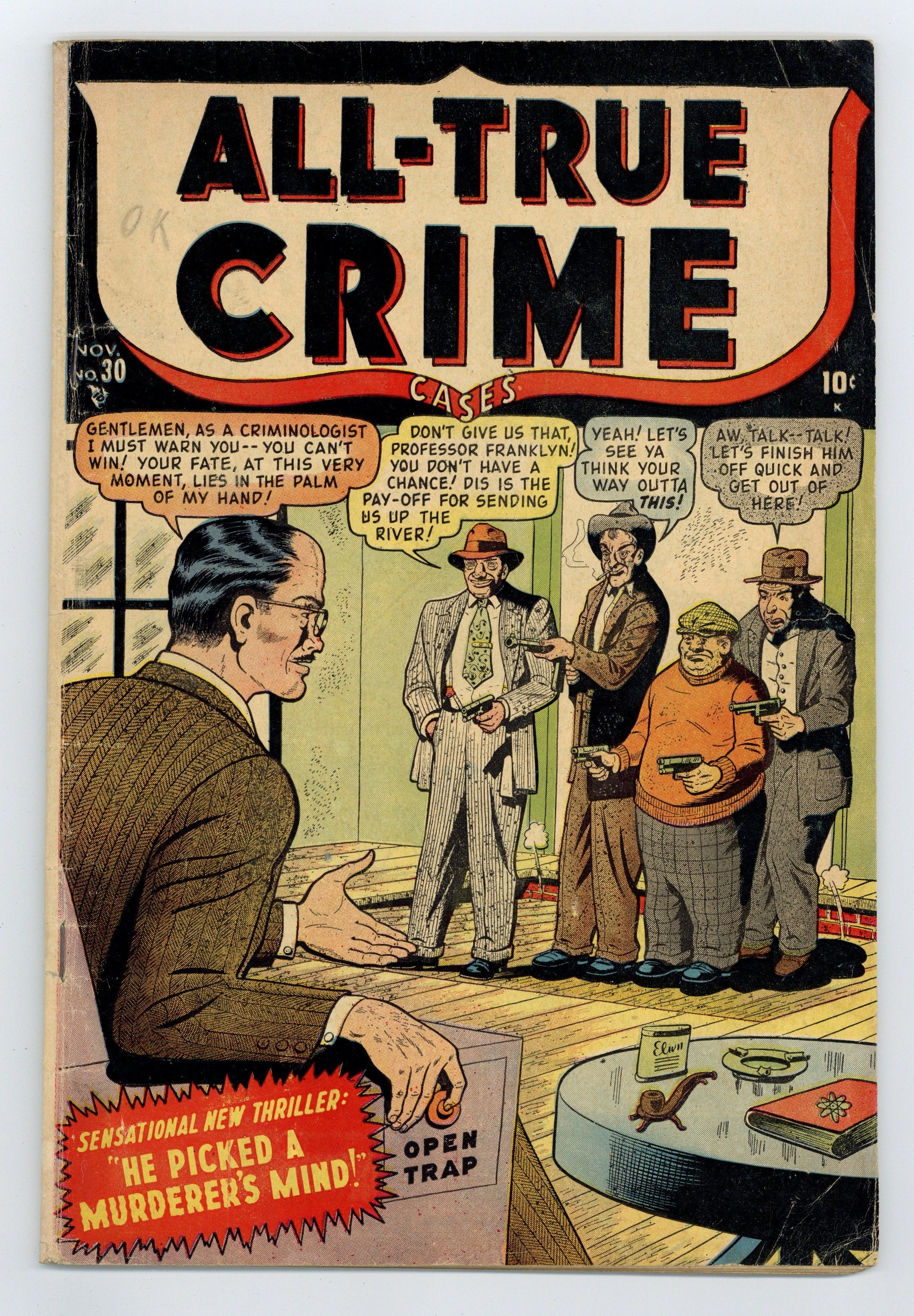 Written by unknown. Art by Frank R. Sieminski and unknown. Sensational new thrillers! In this issue: "Wall of Guilt!" with pencils by Frank R. Sieminski; "Revenge!"; "Letter from the Dead!"; 2-page text story "The Plainest Clue"; "The Fatal Button!"; and "The Eyes of Doom!" 48 pages, full color. Cover price $0.10.