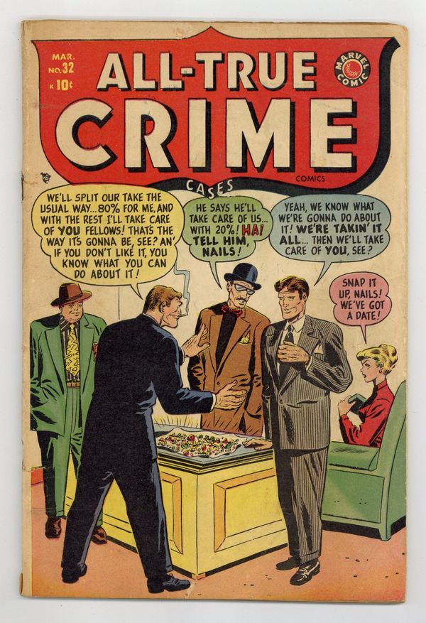 Written by unknown. Art by John Buscema and unknown. In this issue: "Seven Long Years!" with pencils by John Buscema; "Spotlight on Crime!"; 2-page text story "Night of Terror"; "Millions for Peanuts!"; and Crime Can't Win story "Death Joins the Revelers!" 48 pages, full color. Cover price $0.10.