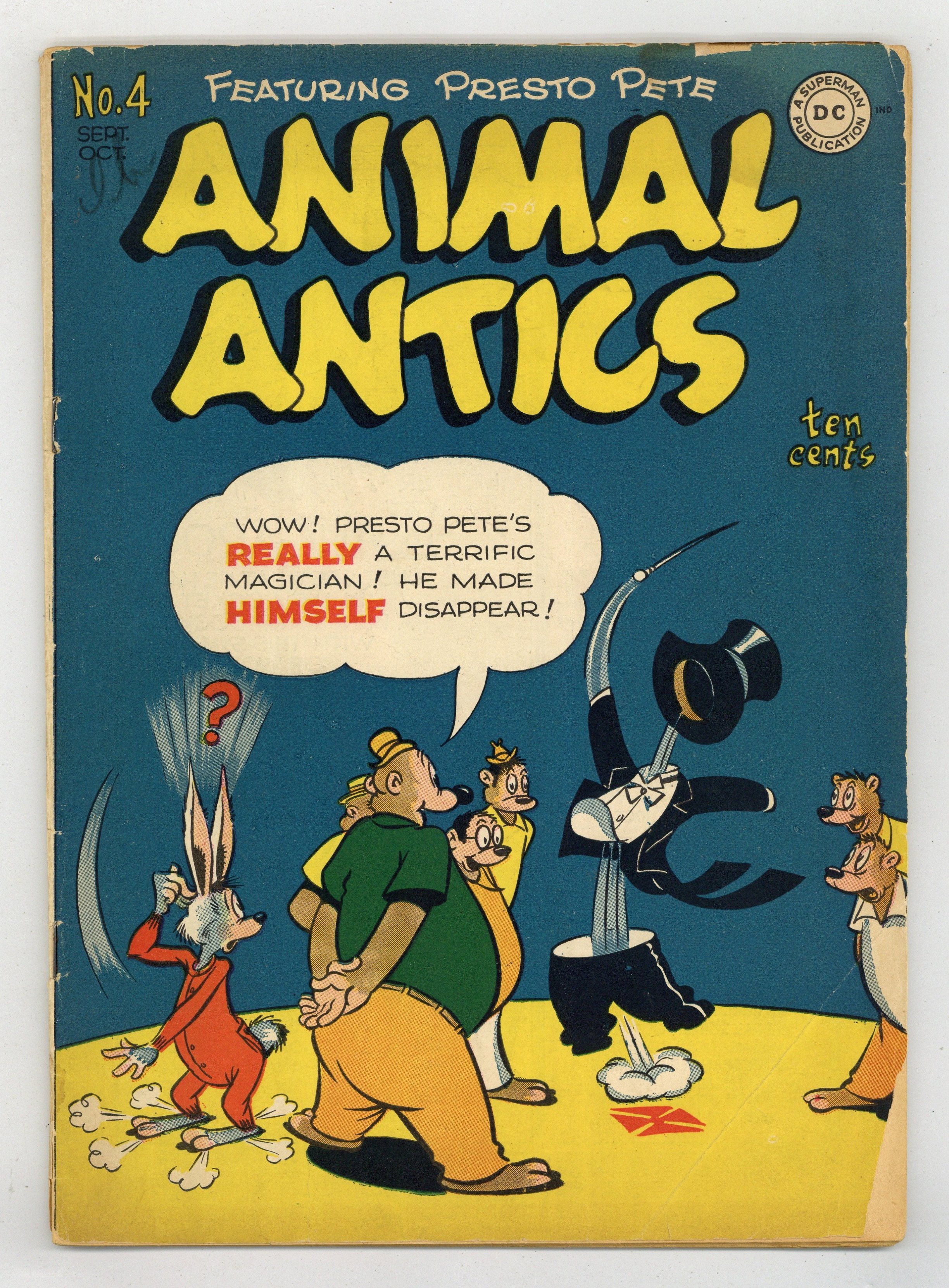 Untitled Presto Pete story, art by Ed Dunn; Pete travels to the Arctic and tries to help a polar bear feel warm for the first time in his life. Untitled Sheriff Corky story, art by Rube Grossman; The Sheriff manages to arrest Grizzly Gus for his frequent gold robberies. Untitled Eager Beaver, art by Otto Feuer; Eager Beaver tries out his ideas on child-rearing when he babysits a little brat. Untitled The Tortoise and the Hare story, art by Rube Grossman; Harry thinks that Throckmorton can't swim, so he challenges him to a race down the river. Gone Fishing starring Skooky, art by Otto Feuer. Untitled Walrus Whopper story. Untitled Goofy Goose, Inventor story, art by Rube Grossman. Untitled Raccoon Kids story, art by Otto Feuer. 52 Pages, Full Color. Cover price $0.10.