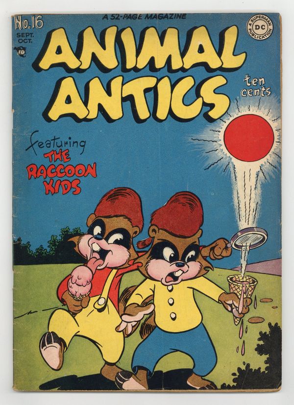 Edited by F. W. Ellsworth (credited) and Bernie Breslauer (actual). Cover art by Otto Feuer. Stories by Otto Feuer, Martin Naydel, Rube Grossman, Jack Mendelsohn, and Howie Post. Anthropomorphic funny-animal tales filled with Animal Antics, featuring such characters as the Raccoon Kids, Pete the Pup, Goofy Goose, Eager Beaver, Custer Cat and Cheesy the Mouse, and Presto Pete. 52 Pages, Full Color. Cover price $0.10.