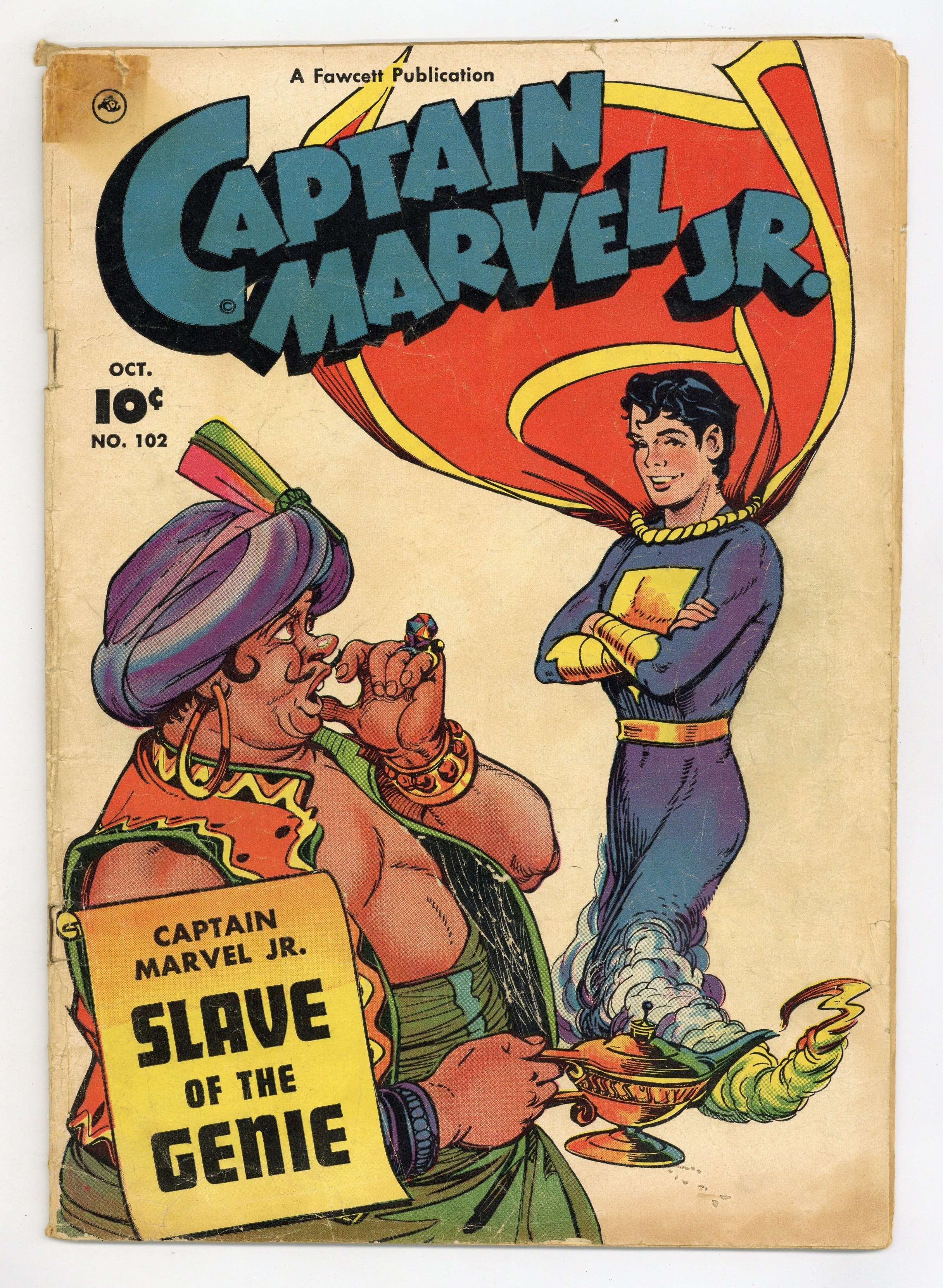 Cover by Bud Thompson. Stories by Otto Binder, Bill Woolfolk, and Art Helfant. Art by Joe Certa, Art Helfant and Bud Thompson. Superhero action with Freddy Freeman, who gains the same powers as his hero Captain Marvel, better known these days as Shazam. Captain Marvel Jr. sets out to extinguish the southwestern forest fire known as Big Smoky. Marvel Jr. gets on the wrong side of a powerful genie. CMJ meets aliens and battles a Jabberwocky-sized monster, to get to the truth about The Truthful Lie. Captain Marvel Jr. Battles Big Smoky; Rubbernose Randolph; The Angle Kid; The Truthful Lie; Kanvasback: The Battling Buffoon!; A Slave of the Genie! 32 pages, Full Color. Cover price $0.10.