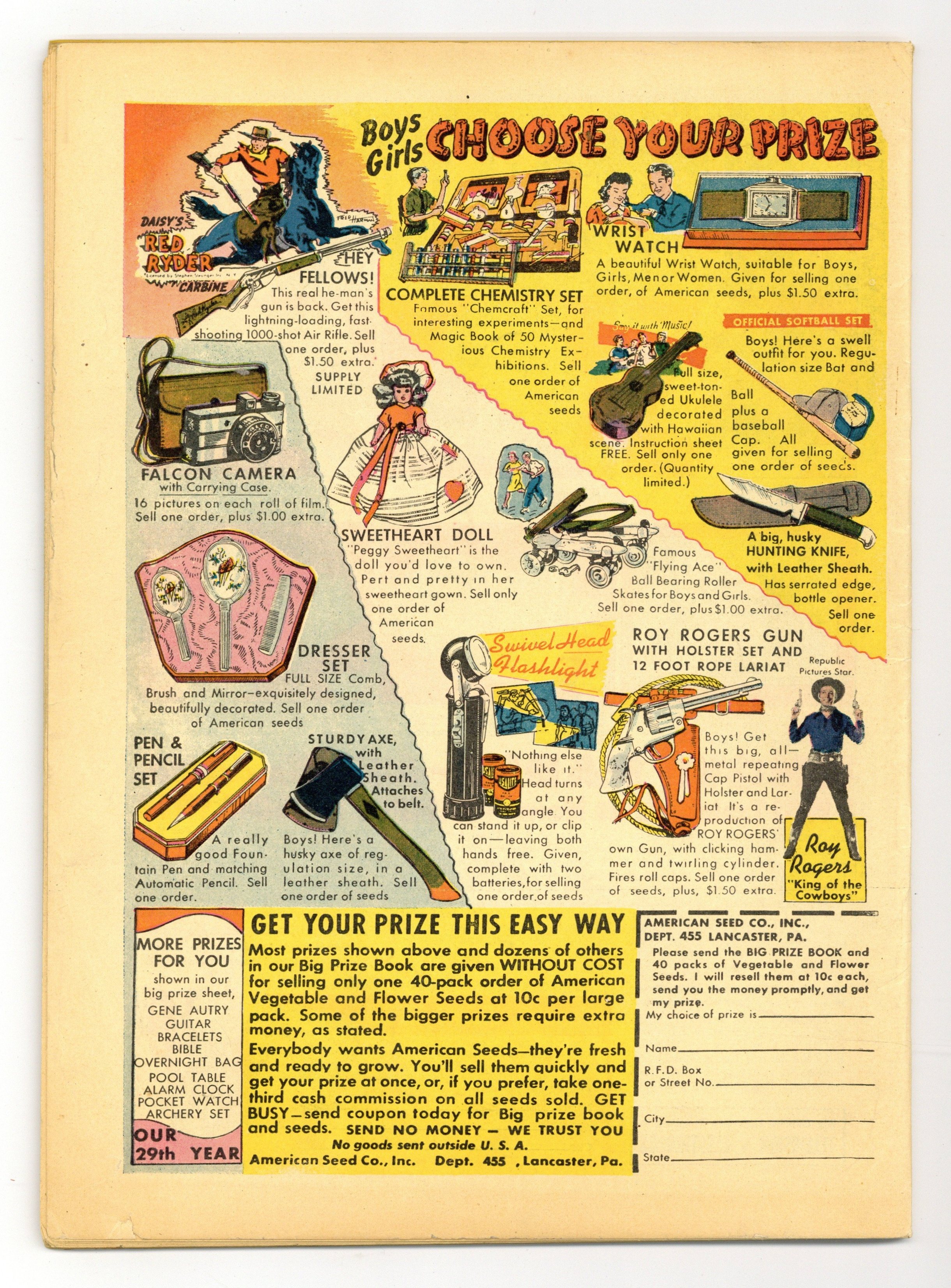 Stories and art by Dan Barry and Leonard Frank. The comics incarnation of a beloved radio hero, aviator "Red" Albright uses his inventions, including an early wingsuit, to fight evil as Captain Midnight. Ivan Shark plunders a gold shipment destined to feed the starving refugees of Europe, and holds a yachtful of people for ransom, in a story with art by future Flash Gordon artist Dan Barry. Captain Midnight's experimental rocket to the moon has a stowaway, an escaped convict (still wearing his striped suit under the space helmet) named Killer Jordan. Femme fatale Delicia woos and abducts Captain Midnight's dopey sidekick Sgt. Twilight, but Twilight maintains his cluelessness even while tied up in a bag. Marauders of the Deep; Pilot Pete; Dija Ever--?; Trip to the Moon; Whipper-Snappers; Sgt. Twilight Meets the Dawn; Freddy Freshman; Red Skye: Rio Round-Up; Captain Midnight Fights For Freedom; Johnny Blair, in the Air; Your Invention Page. 48 pages, Full Color. Cover price $0.10.