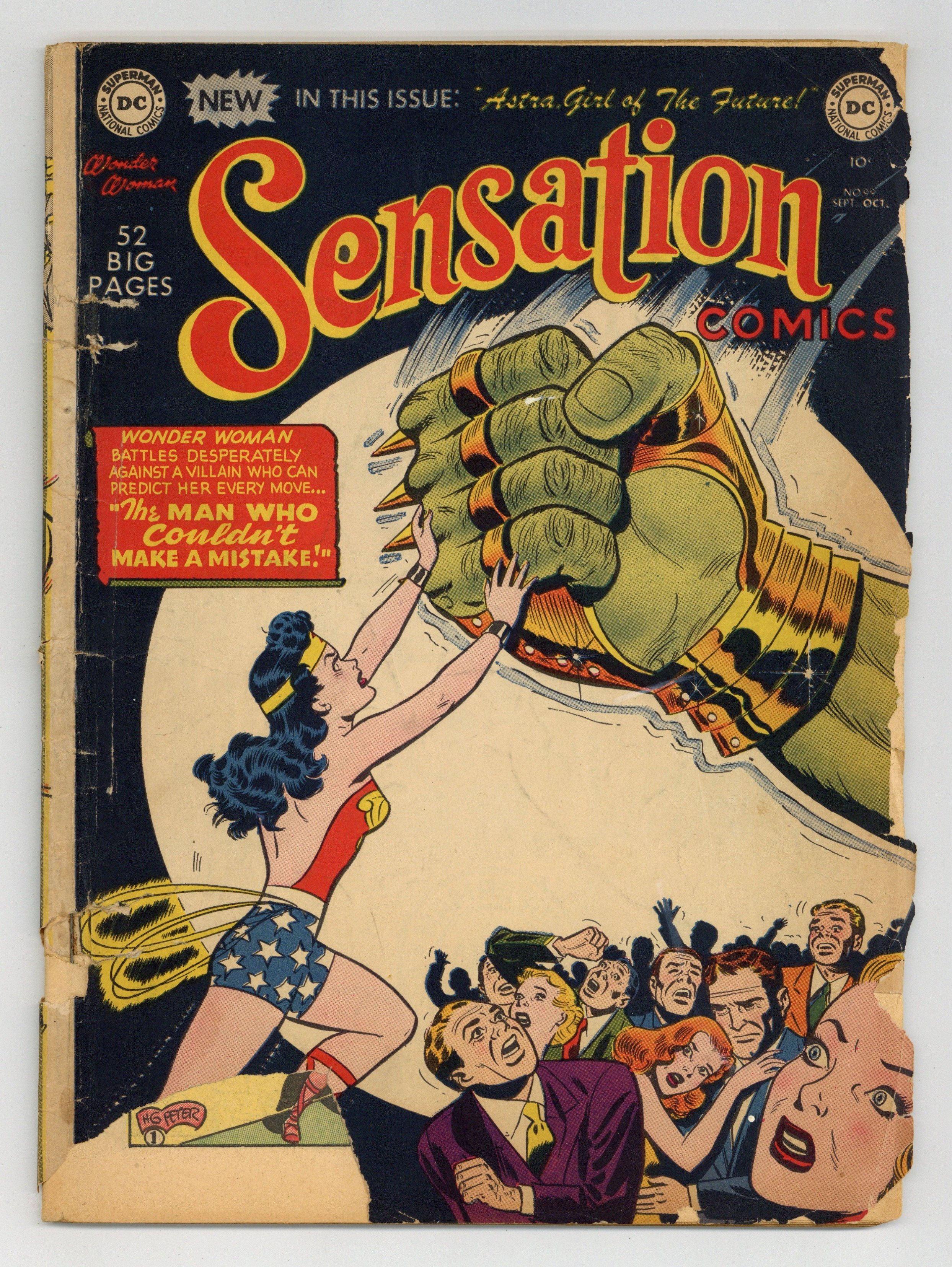 Cover pencils by Irwin Hasen, inks by Bernard Sachs. The Man Who Couldn't Make a Mistake starring Wonder Woman and Jasper Lang, script by Robert Kanigher, art by Harry G. Peter. Danger Has Two Faces! starring Dr. Pat, pencils by Carmine Infantino, inks by Frank Giacoia. The Strange Color Out of Space starring Astra, pencils by Irwin Hasen, inks by Bob Oksner. The Failure of Romance, Inc.--Romance, Inc., pencils by Carmine Infantino, inks by Joe Giella. 52 pgs. $0.10. Cover price $0.10.