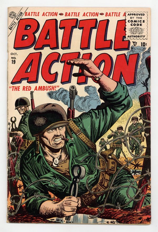 "The Red Ambush" (art by Gene Colan), "The Colonel's Last Mistake" (art by Joe Sinnott), "The Human Target," "Smashthrough" (pencils by Bob Forgione, inks by Jack Abel), and a two-page text story, "Swamp Game." Cover price $0.10.