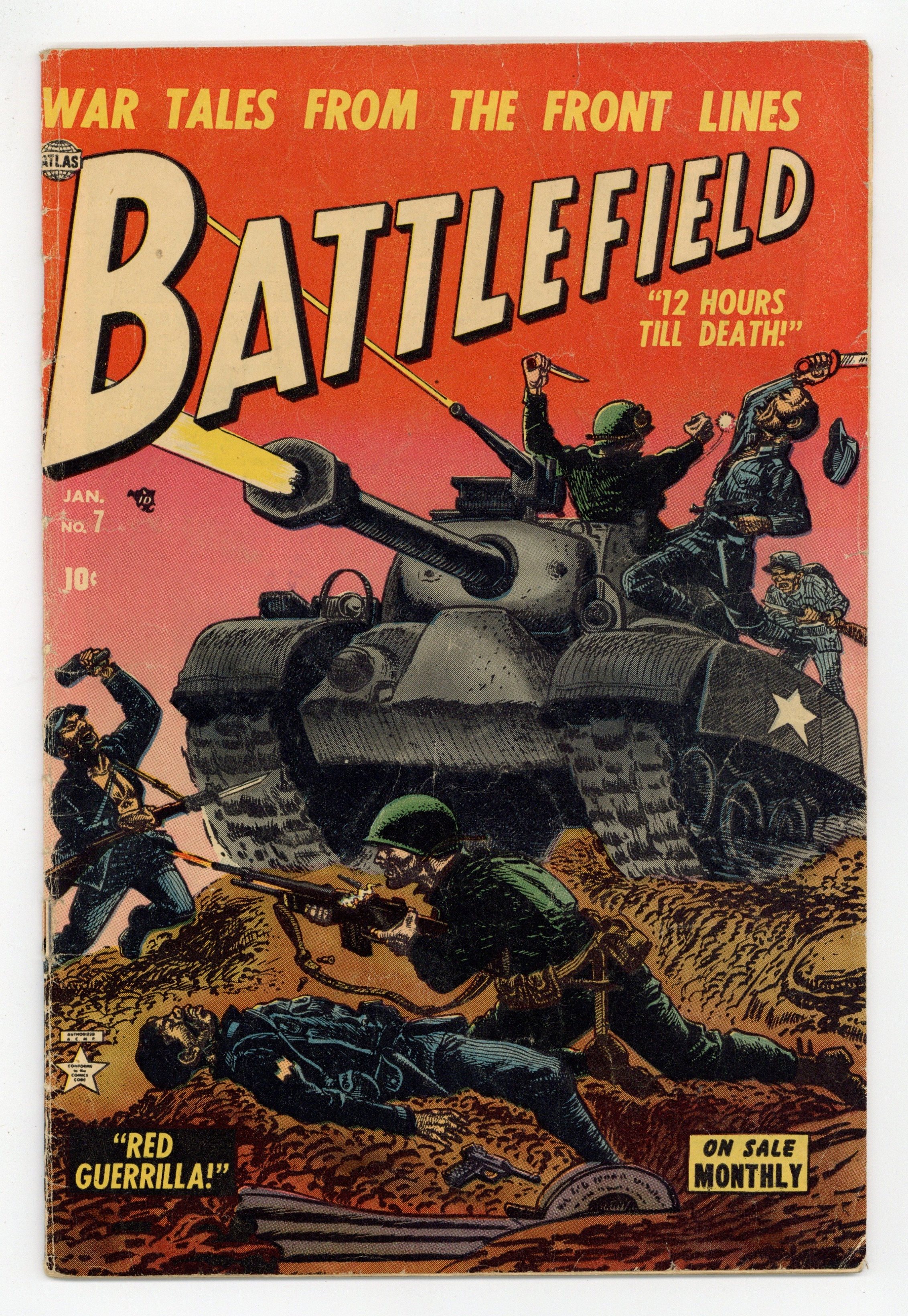 Cover by Carl Burgos. "12 Hours Till Death," script by Carl Wessler, art by Russ Heath; Five engineers are sent behind enemy lines to blow up a power plant. "The Big Bluff!", pencils by Mike Sekowsky; A North Korean officer tries to take a hill held by American soldiers. "Rangers Stick Together" two-page text story. "Out Of The Frying Pan," art by Vernon Henkel; American prisoners escape from a POW camp and steal a tank to return to their lines. "Red Guerilla!", script by Carl Wessler, art by Jay Scott Pike; A North Korean captain is stirring up the local farmers against the American forces. 36 pgs., full color. Cover price $0.10.