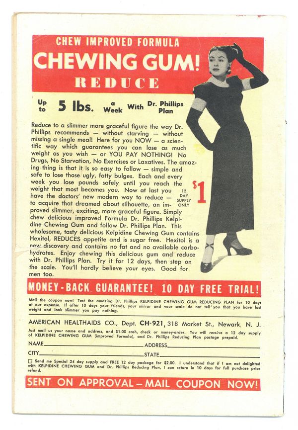 $38.50- 1" tear on back cover. 3/4" lateral tear along staple. Water/moisture damage.