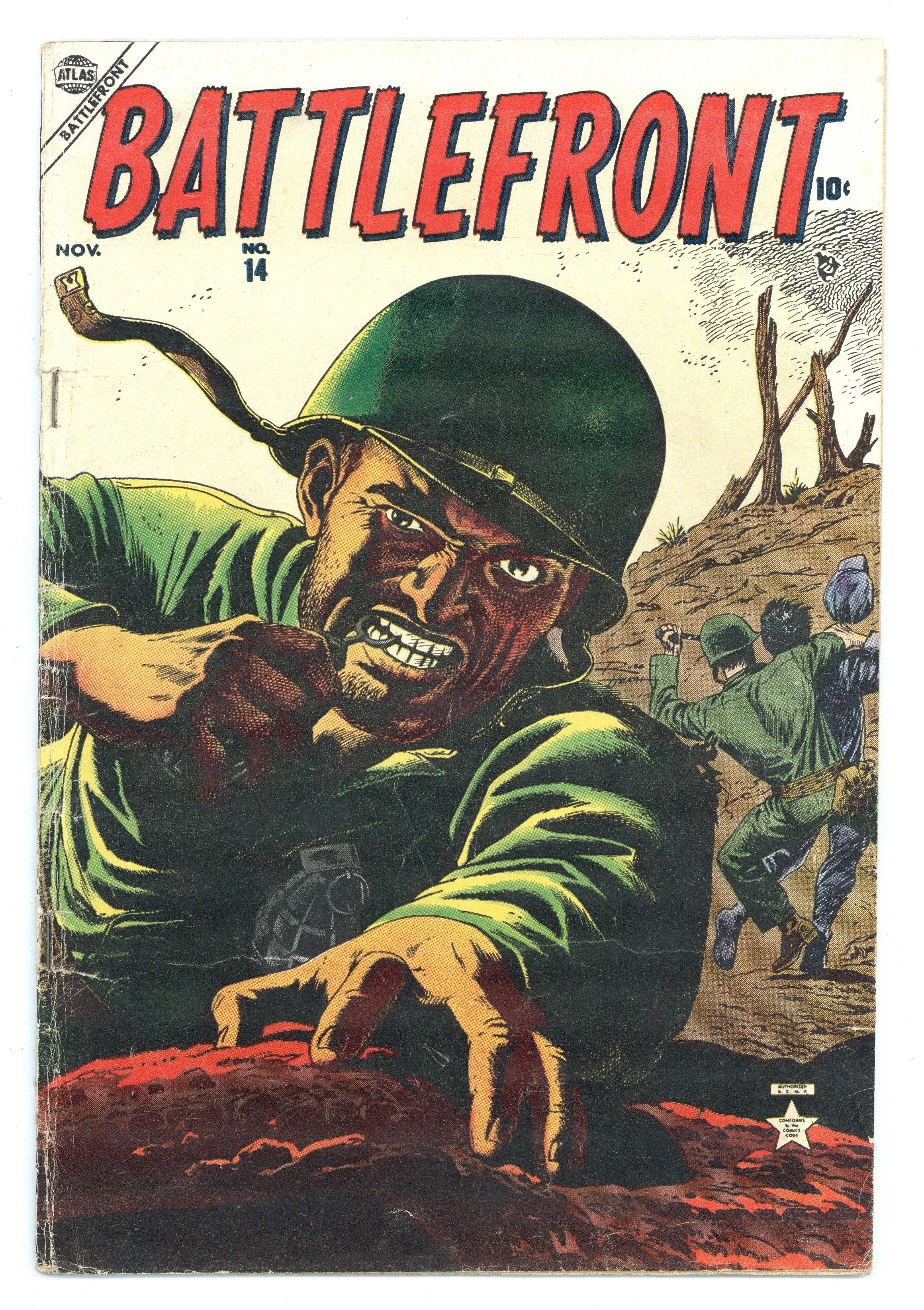 Note: The contents of this issue were apparently intended for Battle Brady (1953) #15, but that series was cancelled with #14. Cover by Russ Heath. Written by unknown. Art by Syd Shores, Mort Lawrence and unknown. Featuring three untitled Battle Brady stories: the first one pencilled by Syd Shores, the second one drawn by Mort Lawrence, and the third one pencilled by Syd Shores. Plus Sgt. Socko Swenski's Combat Course: "Lesson 6/Korea the Hermit Kingdom!" And: 2-page text story "Man Versus Machines"! 32 pages, full color. Cover price $0.10.