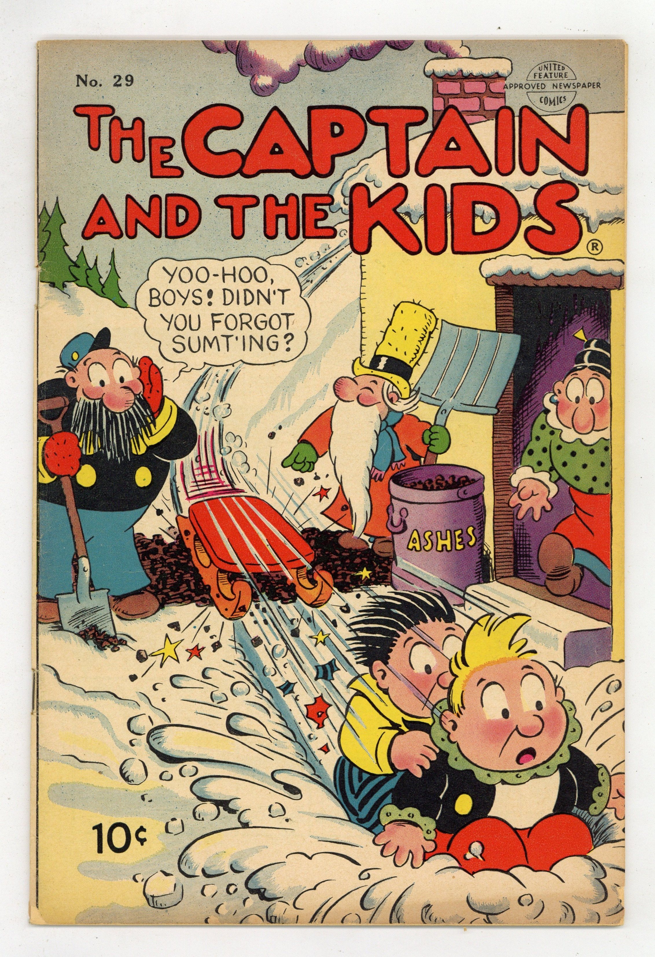 Stories and art by Rudolph Dirks and others. Mama, the Inspector and most of all the Captain bear the brunt of Hans and Fritz's mean-spirited pranks, but the Kids always get it in the end. The Captain starts a feud with the Kids "champeen" goat, so he has only himself to blame for the results. To avoid unwelcome company at Thanksgiving, the Captain gets the Kids to disguise themselves as a doctor. But he's not prepared for the doctor's "bedside manner." The Captain and the Kids; Keep Your Eye on the Turkey - and Duck!; Stick Around, Cap, the Party's Just Getting Glued!; With This Bunch There's a Catch to Everything! 32 pages, Full Color. Cover price $0.10.