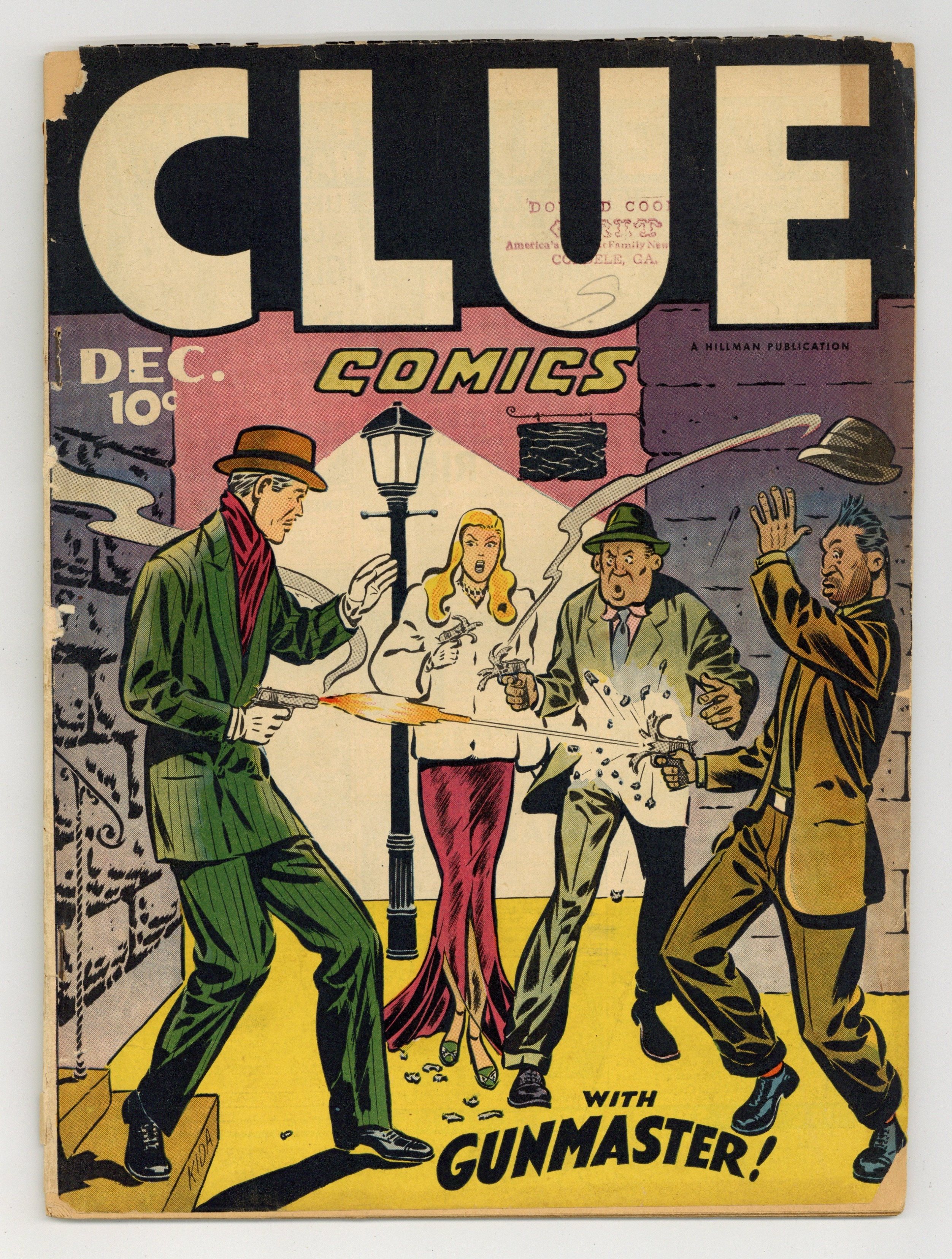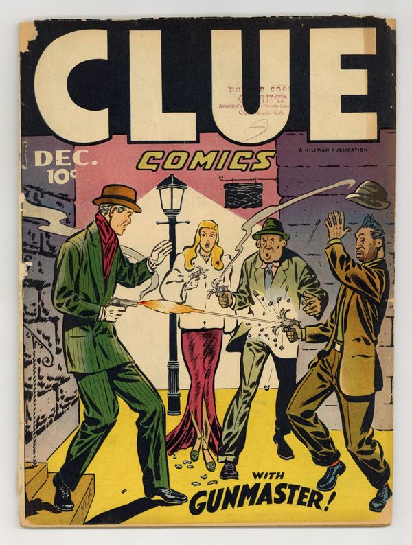 Cover by Fred Kida. Stories and art by Fred Kida, Art Helfant, Ray Houlihan, Tony DiPreta, Dick Hall and Maurice del Bourgo. Forgotten superheroes from the Golden Age of comics, featuring early work by Dan Barry and other comics legends. Nightmare and Sleepy were listed in Jon Morris's 2015 book The League of Regrettable Superheroes. Gun Master seeks a new radar-controlled bullet, but blonde femme fatale Velvet Silver is smuggling the plans away, in a story with nice bad-girl art by Fred Kida. The eccentric Dr. Royce bets a railroad magnate $1 million that he can steal an entire train. Hired killers seek a Thai idol that can grant wishes, but soon wish they hadn't found it. Gun Master; Nightmare and Sleepy; Fetlock Groans the Detective; Stupid Manny; Cedric the Sissy; Trouble at Mickey's: A Gunmaster Story; Cornie Corner; The Secret of Krishnu; Swifty; Micro-Face. 48 pages, Full Color. Cover price $0.10.