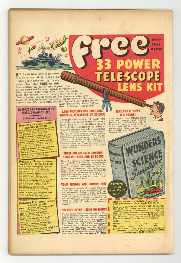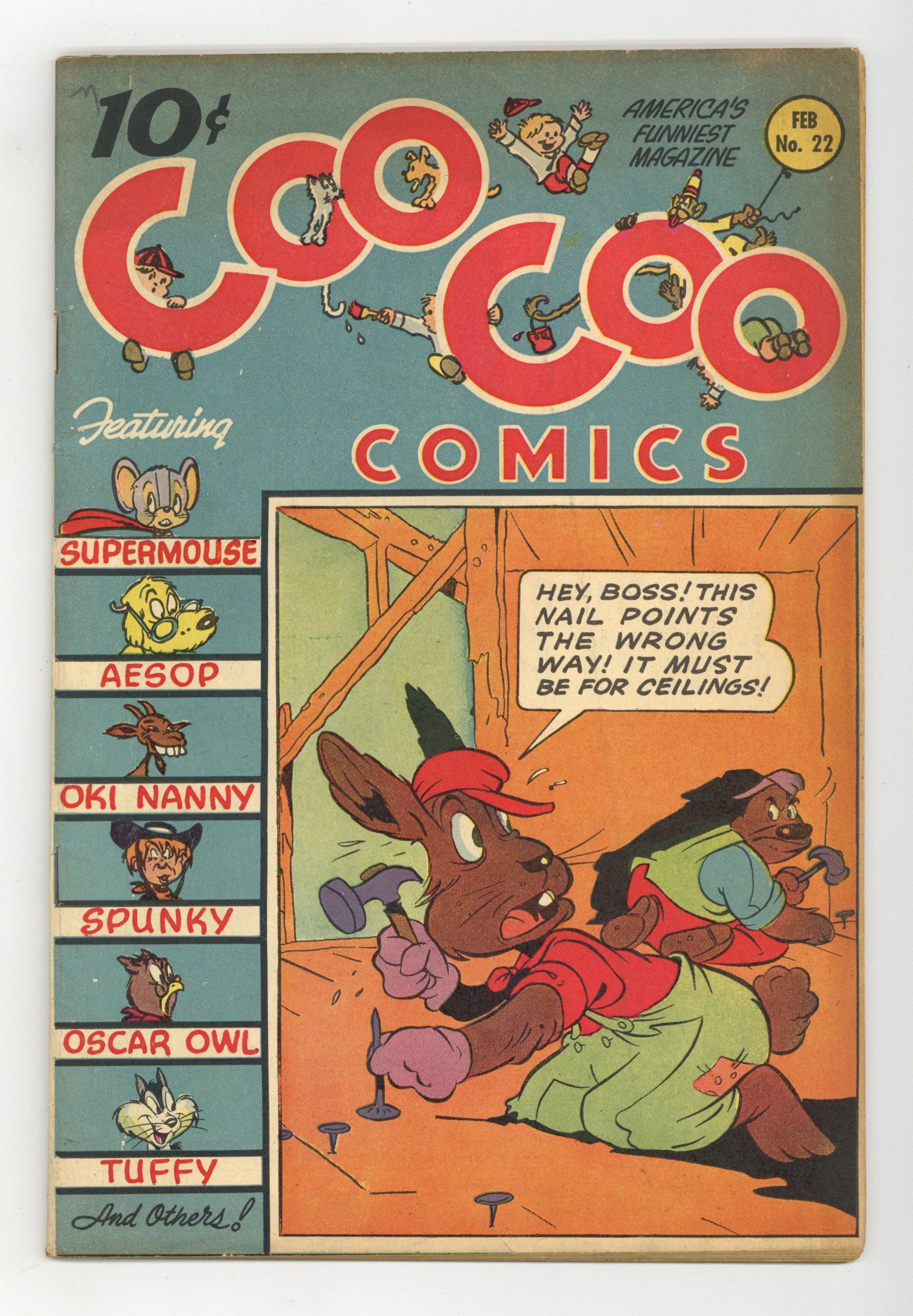 Contains funny animal stories. In order of appearance: "Supermouse"; "Fritz"; "Tuffy" art by Jack Bradbury"; "Oki Nanny"; "Aesop"; "Spunky, 'The Pronto Kid'" art by Jack Bradbury; "Oscar Owl" story by Hubie Karp, art by Manuel Perez; "Penny"; and "Gilbert" story by Hubie Karp, art by Curt Perkins. Comic advertisements: "History's Mysteries" from Smith Brothers Cough Drops; "Speedy Wheeler Saves the Day and Wins a Bike" from Schwinn Bicycles; and "Volto From Mars" from Grape-Nuts Flakes. Illustrated text stories: "Ferdinand's Fun Festival: The Forest Magician Presents Some Clever Tricks!" by Alexander Samalman; and "Freddy Bear, Cowboy: A Roping, Riding Bear Cub Amazes His Friends!" by Donald Bayne Hobart. 52 pages. Full color. Cover price $0.10.