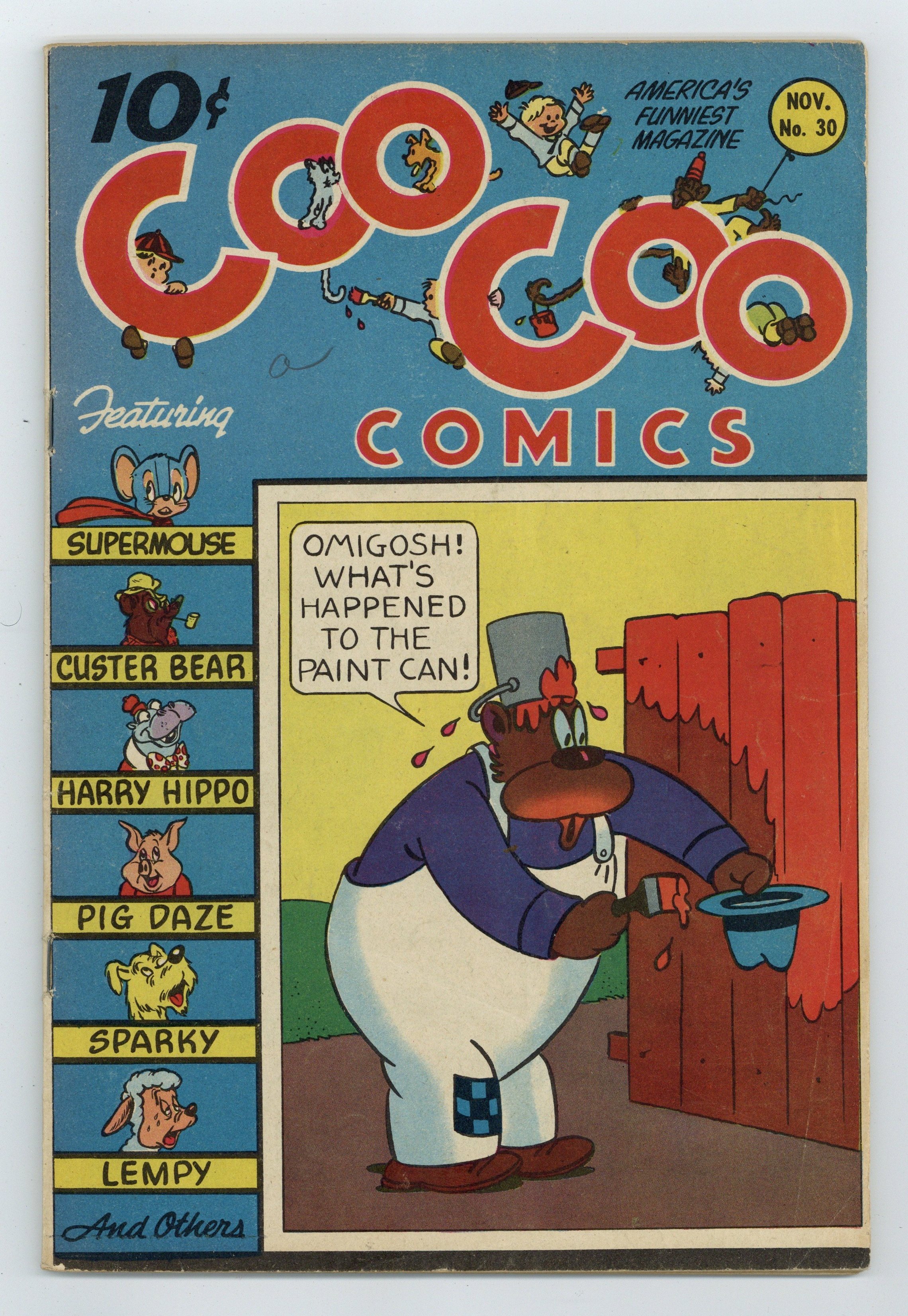 Victor E. Pazmiño cover. Contains funny animal stories. In order of appearance: "Supermouse" reprinted in Golden Collection of Klassic Krazy Kool Kids Komics HC #1-1ST; "Lempy" art by Ken Champin; "Sparky" art by Allan G. Benedict; "Custer" art by Gil Turner; "Pig Daze" art by Ed Dunn; "Harry Hippo" art by Don R. Christensen; and "G. Goldfish, Globe Trotter" art by Lynn Karp. "'Pepsi' the Pepsi-Cola Cop" comic advertisement. Illustrated text stories: "The Merry Magicians: Ferdinand and His Friends Have a Frolicsome Time!" by Alexander Samalman; and "Olga the Ostrich: The Jungle Birds All Laughed at Clumsy Olga!" by Lily K. Scott. 52 pages. Full color. Cover price $0.10.