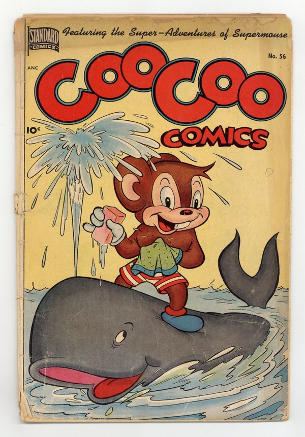 Last issue with the title Coo Coo Comics (until #60). Cover pencils by Milton Stein. Stories by unknown. Art by Vince Fago, Ralph Wolfe, Jack Bradbury, Milton Stein and unknown. Featuring the super-adventures of Supermouse in "Ride 'Em Cowboy" with art by Vince Fago. Also in this issue: "Puzzle Page" with art by Ralph Wolfe; 1-page text story "Andy Antelope's Invention" (by Arnold Drake with illo by Ralph Wolfe); Butch and Buttercup in "Calling Jack Frost" with art by Jack Bradbury; Dudley in 1-pager "Twinkle, Twinkle..." with art by Milton Stein; Coo Coo in "Jungle Jamboree" with art by Milton Stein; 1-page text story "The Duckling Who Couldn't Swim" (by Betty Cummings; credited as Betty Hill, with illo by Ralph Wolfe); and Dizzy Duck and Percy Pig in 2-pager "The Salesman" with pencils by Jack Bradbury. 32 pages, full color. Cover price $0.10.