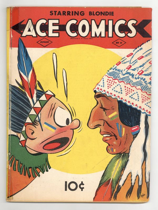 Cover art by Joe Musial. The Phantom strips, scripts by Lee Falk, art by Ray Moore. Pete the Tramp strips by Clarence D. Russell. Jungle Jim strips, art by Alex Raymond. Katzenjammer Kids strips, art by H.H. Knerr. Barney Google strips, art by Billy DeBeck. Seein' Stars strips, art by Feg Murray. Tim Tyler's Luck strips, art by Lyman Young. Just Kids strips by A.D. Carter. Blondie strips, art by Chic Young. Prince Valiant strips, art by Hal Foster. Tillie the Toiler strips, art by Russ Westover. Curley Harper at Lakespur strips, art by Lyman Young. Teddy and Sitting Bull strips, art by Joe Musial. Room and Board strips, art by Gene Ahern. 68 pgs. $0.10. Cover price $0.10.
