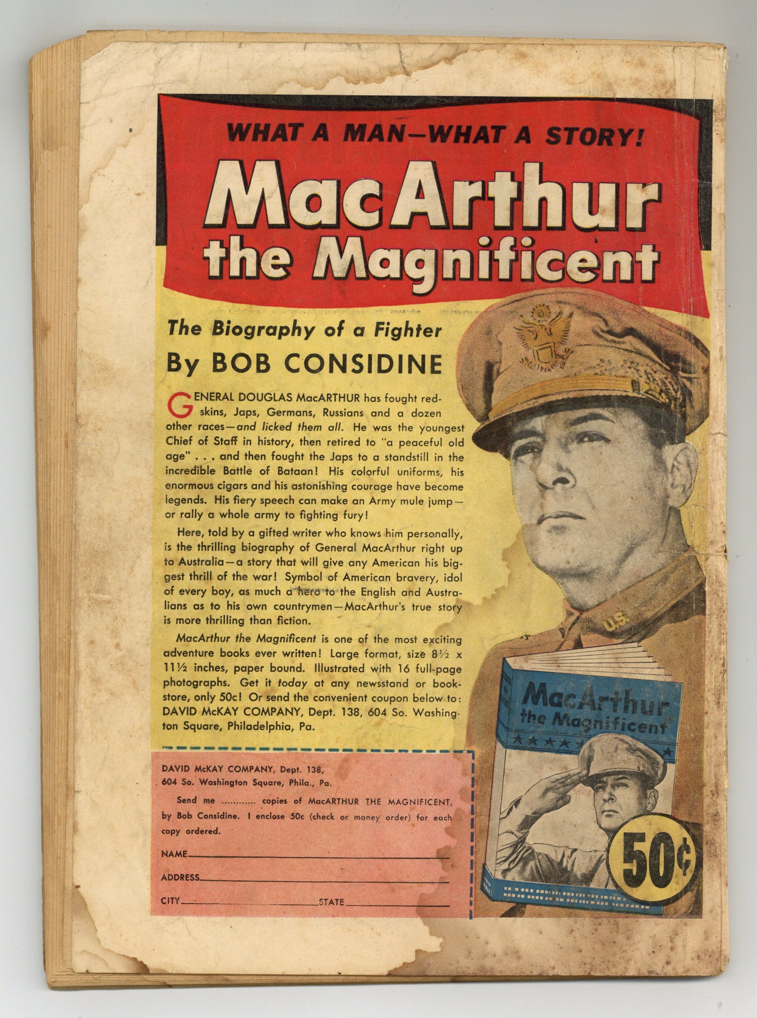 Published Aug 1942 by David McKay Publishing.$65.00- Cover and centerfold detached. Water saturation.