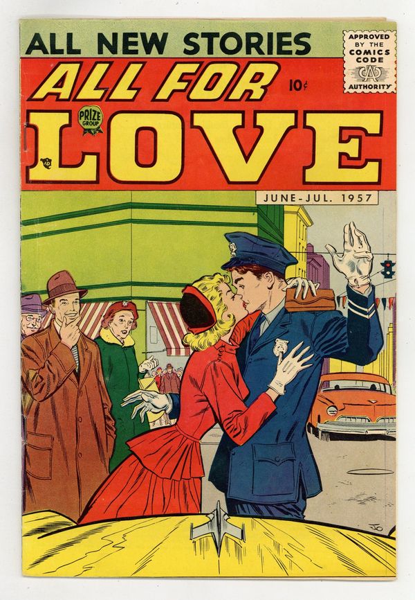Cover by Joe Orlando. Art by Marvin Stein, Mort Meskin, and Ted Galindo. Tales of heartbreak and love from Prize. Kit fends off Larry because she loves his friend Ben, but Ben gets the wrong idea anyway. Nurse Marion must choose between a Hollywood career and the handsome patient she loves. Carrie wants Steve to settle down and become a farmer, but he dreams of travel and the sea. Loving is Believing; Beauty Aids; Leading Man!; His Other Love; Stay Feminine; My Destiny! 36 pages, Full Color. Cover price $0.10.