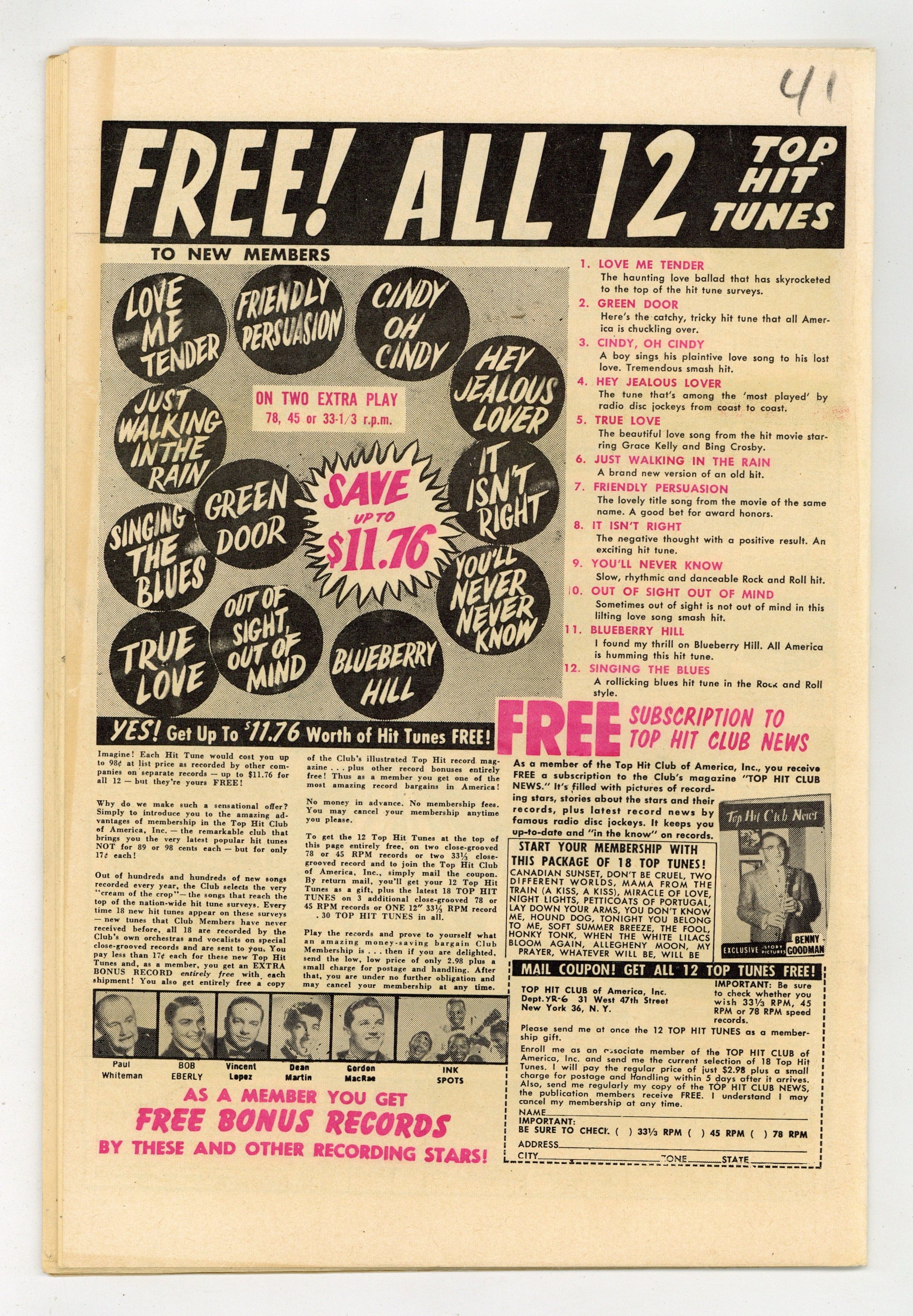 $51.00Cover by Joe Orlando. Art by Marvin Stein, Mort Meskin, and Ted Galindo. Tales of heartbreak and love from Prize. Kit fends off Larry because she loves his friend Ben, but Ben gets the wrong idea anyway. Nurse Marion must choose between a Hollywood career and the handsome patient she loves. Carrie wants Steve to settle down and become a farmer, but he dreams of travel and the sea. Loving is Believing; Beauty Aids; Leading Man!; His Other Love; Stay Feminine; My Destiny! 36 pages, Full Color. Cover price $0.10.