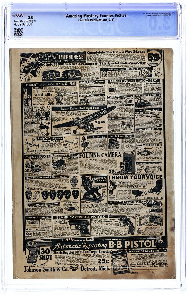 Published Jul 1939 by Centaur Comics.$1,000.00- Paper: Off white