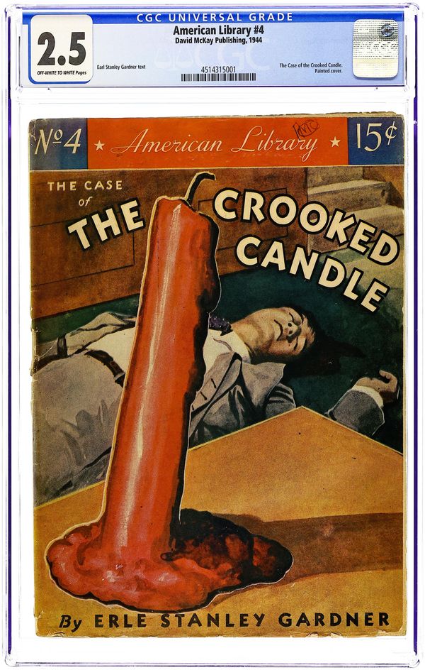 The Case of the Crooked Candle. Story by Earl Stanley Gardner. Pioneering comics publisher David McKay presents illustrated versions of bestselling books, an early version of Classics Illustrated and the like. This issue is an adaptation of the 24th Perry Mason mystery novel by Erle Stanley Gardner. A corpse is found in a boat grounded at low tide. But a candle that stands at a steep angle may hold the key to revealing the murderer. An illustrated text version of the story, rather than straight comics. 64 pages, B&W. Cover price $0.15.