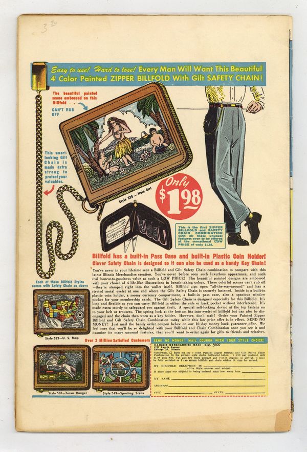 Published Aug 1948 by Lev Gleason.$32.00- 1 1/2" spine split from the bottom. Water damage. Oxidation.