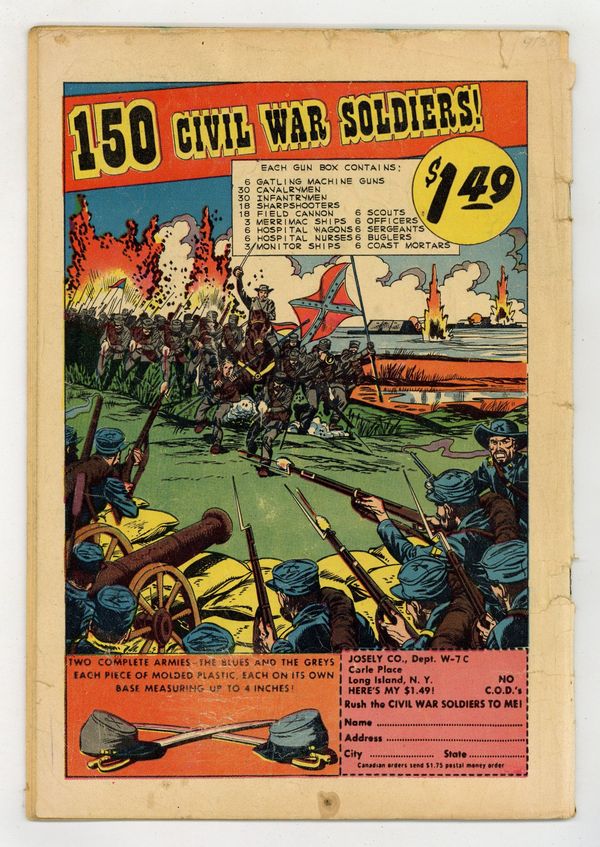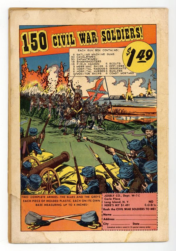 Published Aug 1959 by Charlton Comics Group.$21.00- 1.25" Spine split from bottom. Margin pieces torn out.