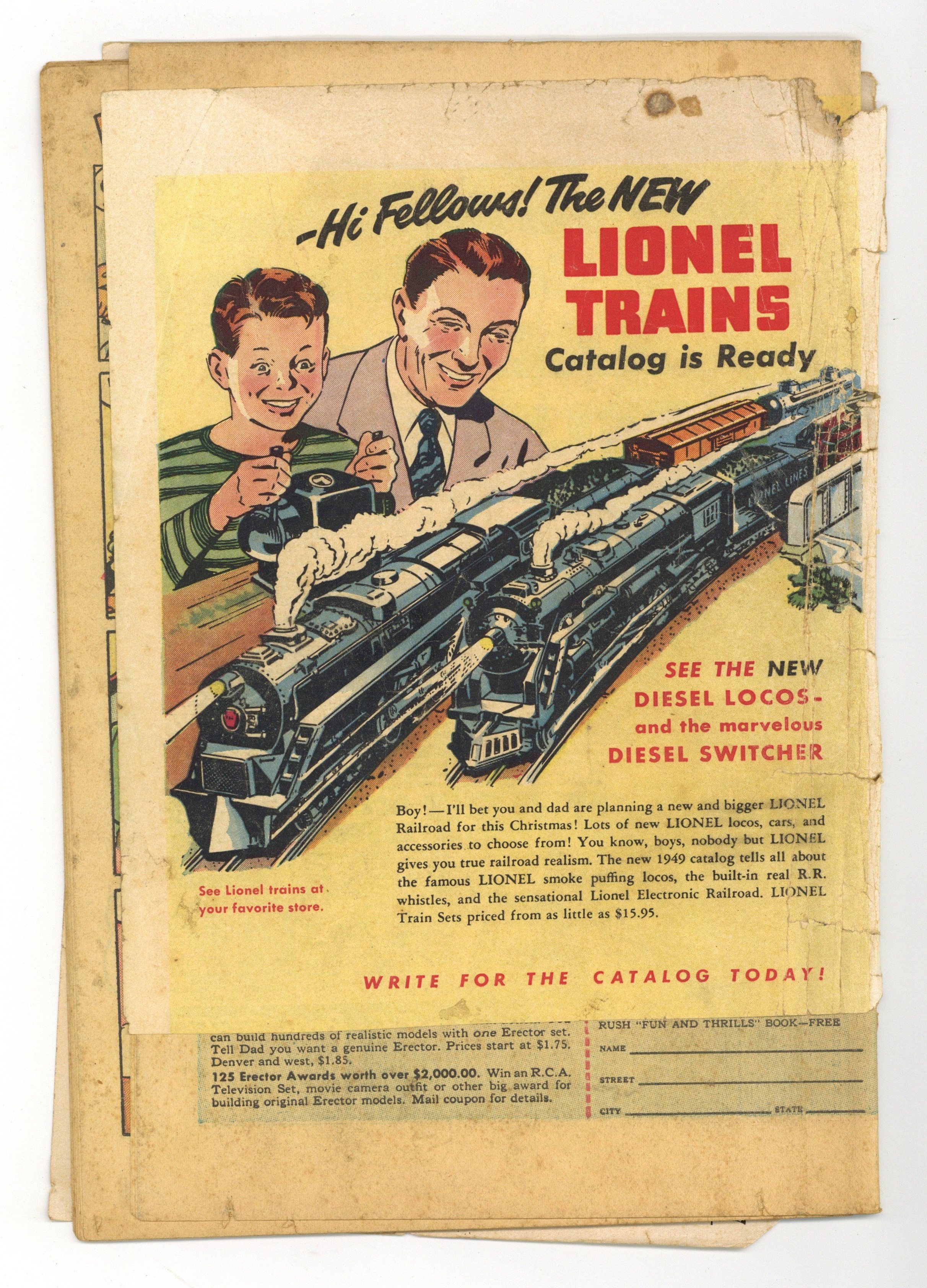 Published 1949 by Standard Comics.$39.00- Cover detached. Coupon cut from back cover. 7" cumulative spine split.