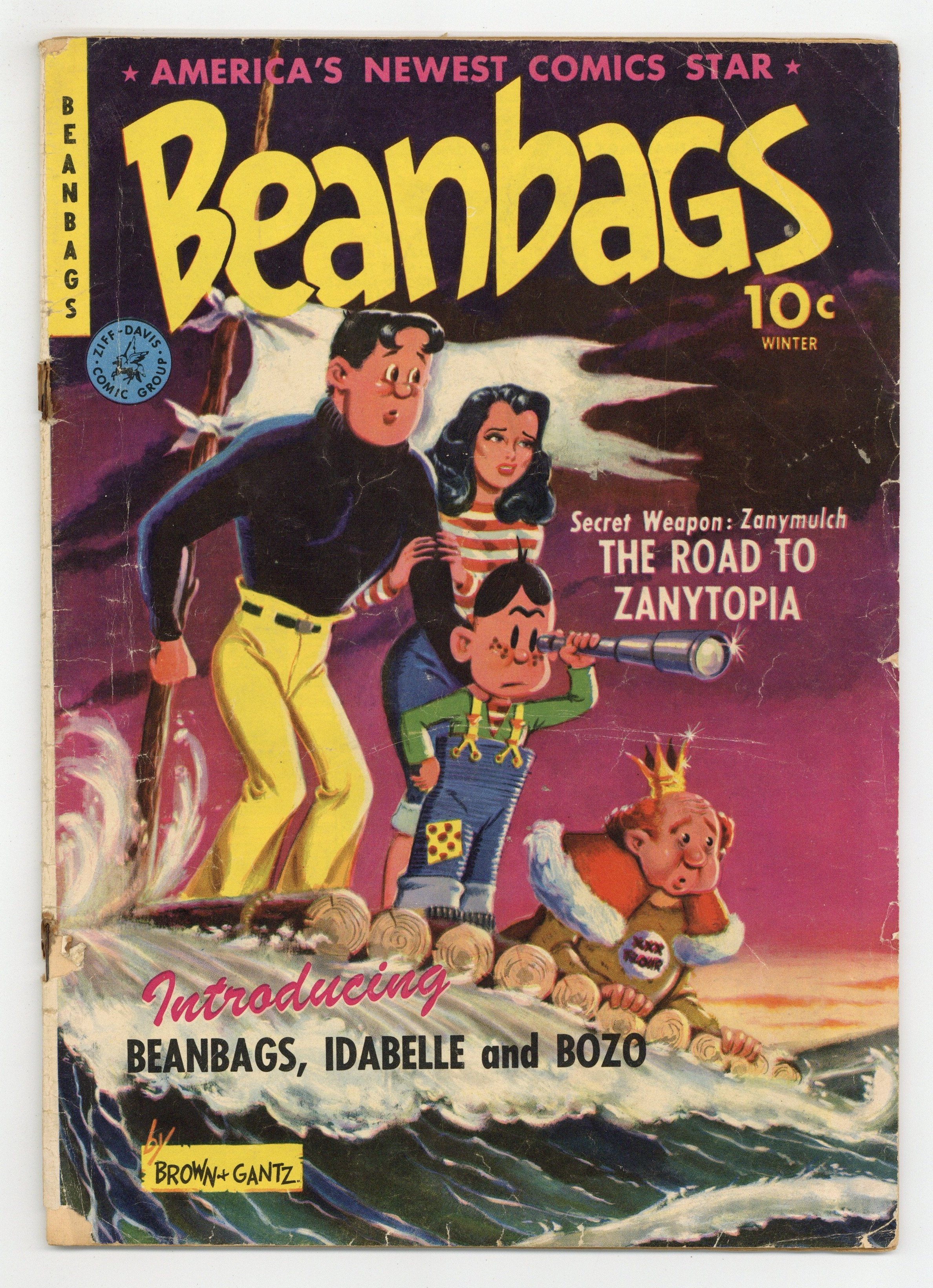 Cover pencils by Ben Brown, inks by David Gantz. "The Road to Zanytopia"; Bozo's Zanymulch is classified as a secret weapon when it's discovered that it will stupefy people. "Culinary Capers"; The gang lands in Zanytopia where they search for the vital ingredient that will complete Bozo's zanymulch recipe. "Shipwrecked"; King Notzo Mportant abdicates his throne and leaves Zanytopia with the gang; On the way home, they're shipwrecked and find themselves in Disturbia, where it rains Zanymulch. Pencils for all stories by Ben Brown, inks by David Gantz. A map of Zanytopia. "Saved by a Fish" text story. Kid Cowboy ad. 36 pgs., full color. Cover price $0.10.