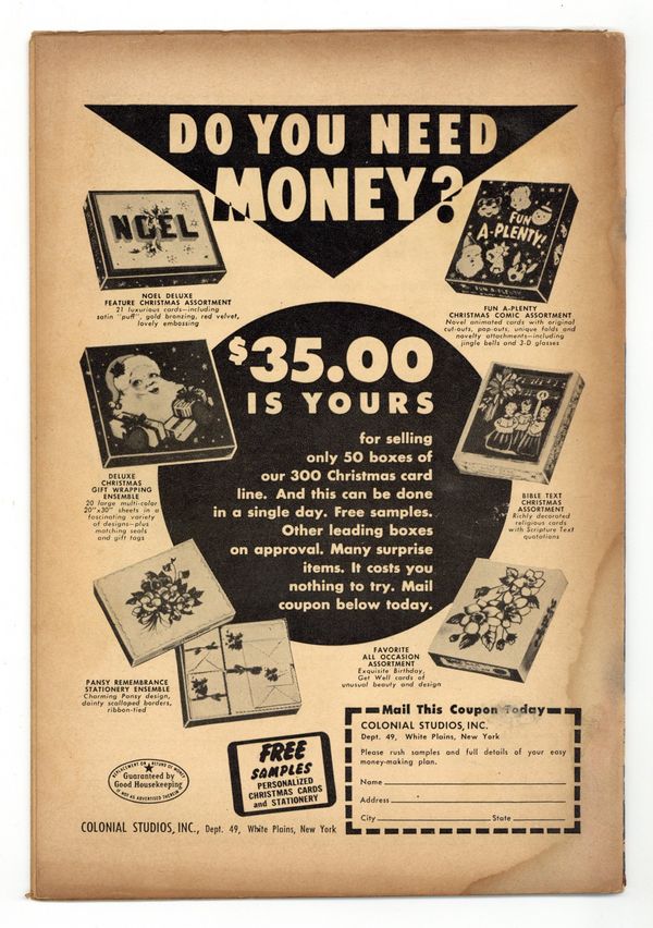 Tags: Pre-Code HorrorPublished Nov 1954 by Ace Comics.$240.00- Heavy cover oxidation, cover detached at one staple and coming loose at the other. Water damage with staple rust/migration.