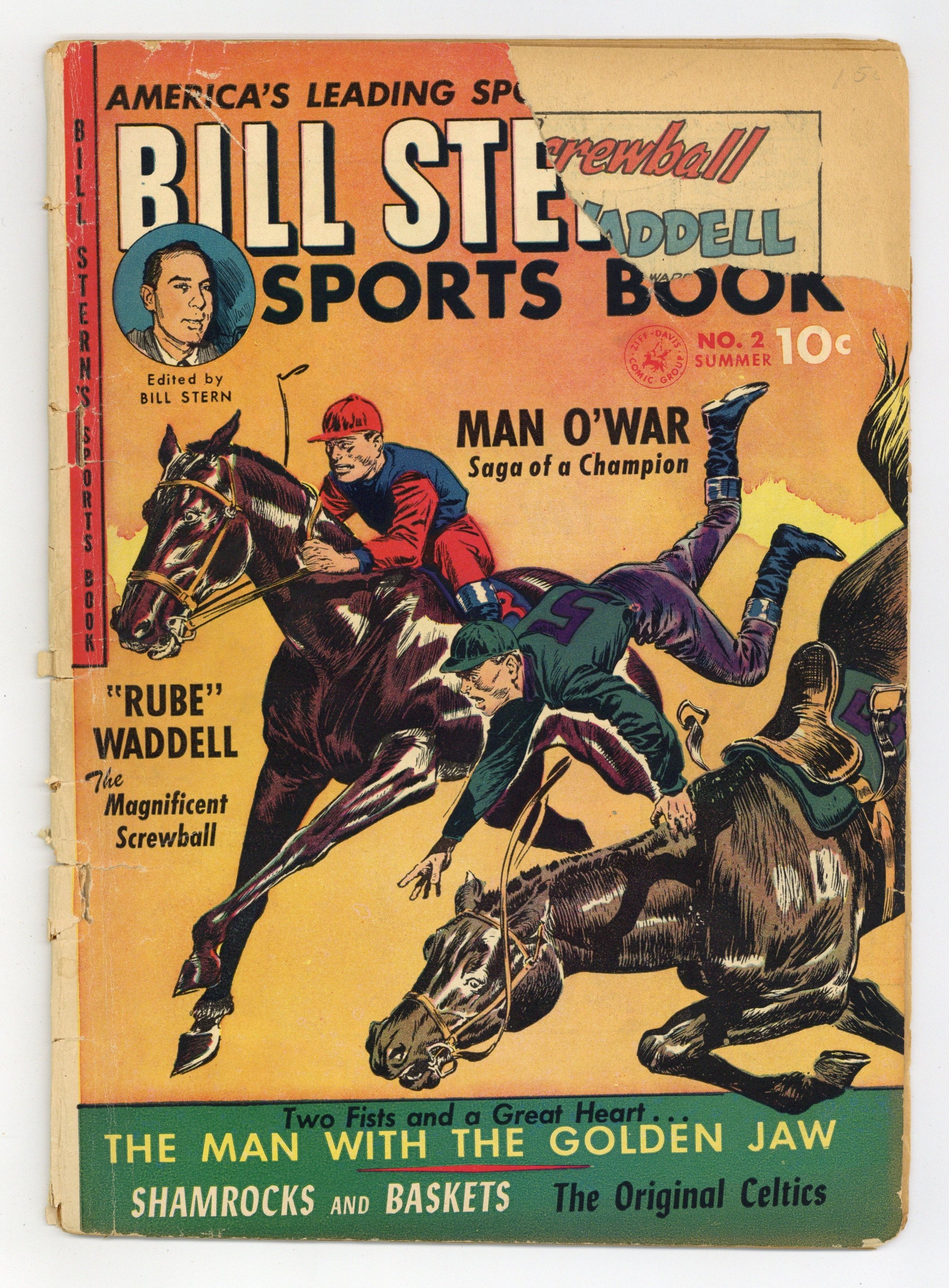 Cover by Norman Saunders. Stories and art by Mike Suchorsky, Ed Silverman, Marvin Stein, Irv Novick, Harry Wilson, Frank Bolle, Jay McArdle and Ric Estrada. True sports stories. The true story of champion racehorse Man O'War. The college football career of future President Dwight "Ike" Eisenhower. West Point football legend "Light Horse" Harry Wilson. Plus "Pigskin Oddities." The Magnificent Screwball Rube Waddell; The Man with the Golden Jaw: The Story of Eugene Cirqi; Harry Wilson: Give It To Light Horse; The Big Train and the Rookie; The Youth on the Bench; Man O'War: Saga of a Champion; Pigskin Oddities; Shamrocks and Baskets: the Original Celtics. Followed by Bill Stern's Sports Book (Winter/1952) #2. 32 pages, Full Color. Cover price $0.10.
