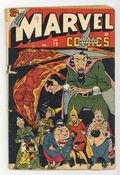 Cover art by Charles Nichols. The Mother Goose Robberies starring Human Torch. The Strange Dr. Feerce starring Sub-Mariner, art by Carl Pfeufer. Vanishing Spies starring Miss America, art by Ken Bald. One in a Million text story. Death at the Wheel starring Young Allies, art by Gustav Schrotter. The Case of the X-Ray Eyes starring Angle, art by Carmine Infantino. 52 pages. Cover price $0.10.