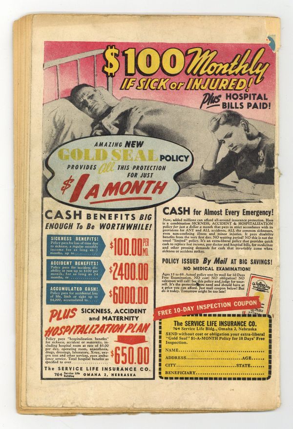 $300.00- INCOMPLETE. 2 Center wraps missing (affects Sub-Mariner and Miss America stories). Chew.