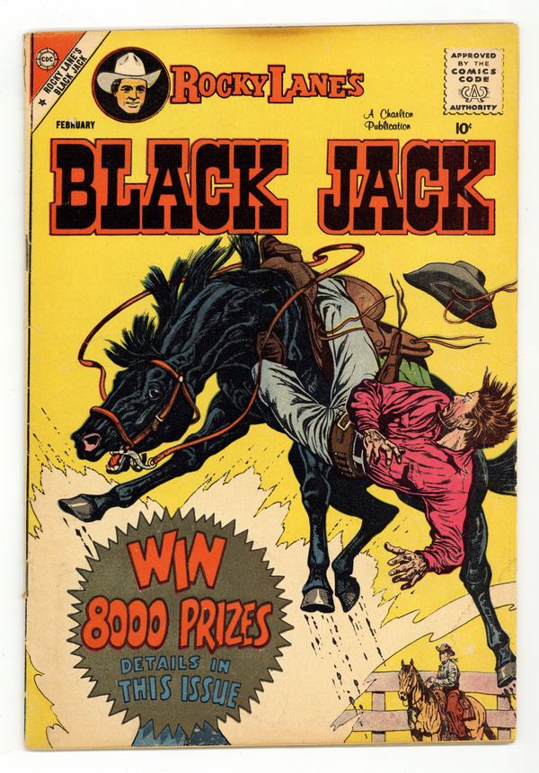 Steve Ditko art on two "Rocky Lane's Black Jack" features. In order of appearance: "Rocky Lane's Black Jack, The Phantom Spring" art by Steve Ditko, reprinted in Steve Ditko Archives HC (2009-2016 Fantagraphics) #6-1ST; "Rocky Lane's Black Jack, For a Good Purpose" art by Rocco A. "Rocke" Mastroserio; "Rocky Lane's Black Jack, The Merciless Mesa" art by Steve Ditko, reprinted in Steve Ditko Archives HC (2009-2016 Fantagraphics) #6-1ST; "Bullet Toll"; and "Rocky Lane's Black Jack, Drygulcher's Decoy" art by Ernest Huntley Hart. Indicia states: "ROCKY LANE'S BLACK JACK". 36 pages. Full color. Cover price $0.10.