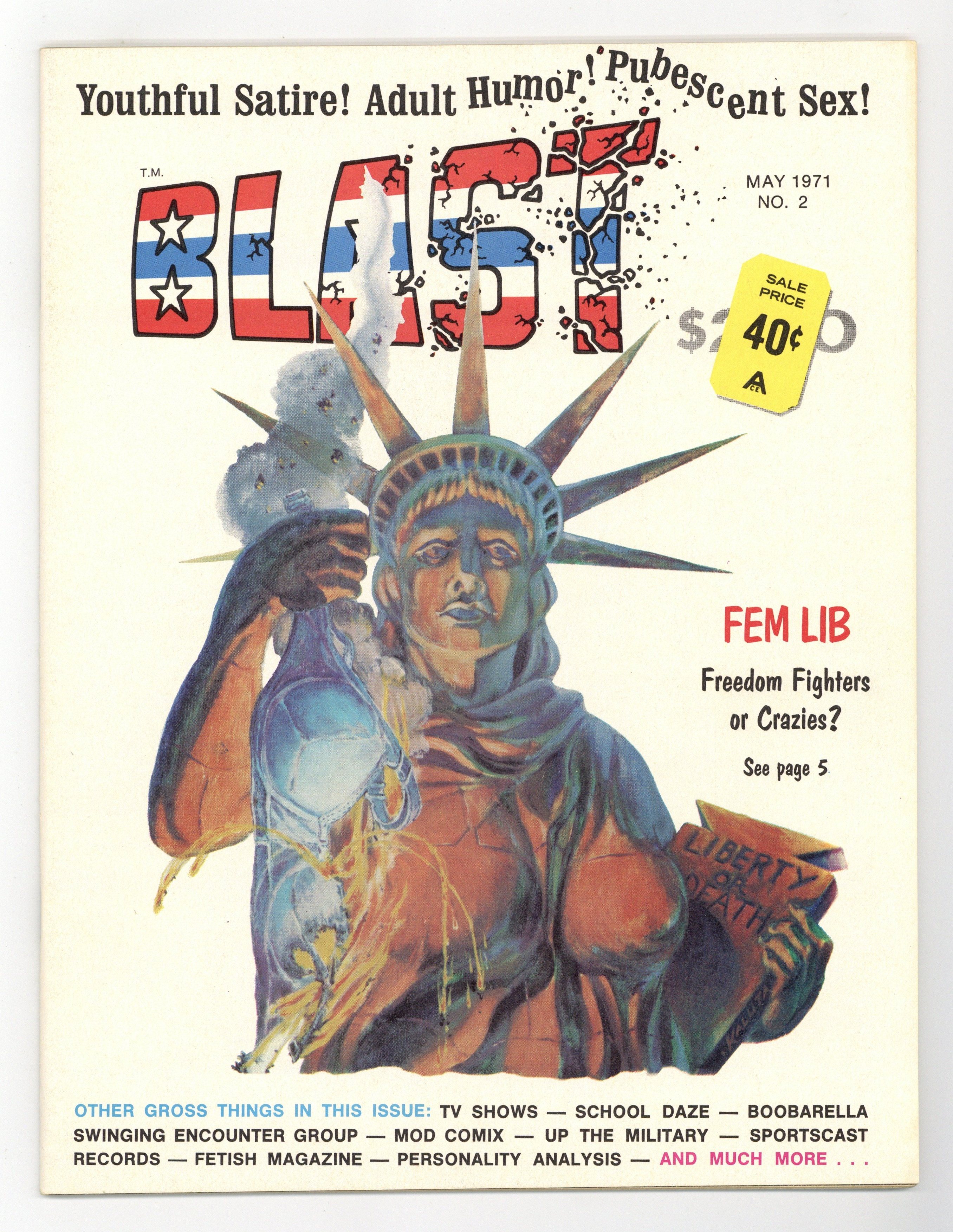 Published May 1971 by G&D Publications.$28.00Cover by Michael Kaluta. Edited by Al Forman. Stories by Stan Goldberg, Marv Wolfman, John Stevens, Bob Smolin, Bob Jenney, Chuck McNaughton, Michael Kaluta, Stu Schwartzberg, Jim Mooney, Charles Rodrigues, Mel Campbell, Marvin Myers, Suzanne Douglas, Al Weiss, and Nicola Cuti. Short-lived humor magazine inspired by the early National Lampoon. Parodies of Archie, Little Orphan Annie, Li'l Abner, Blondie and Peanuts; a spoof of the movie Barbarella. Final issue of the series. 8 1/2 in. x 11 in., 48 pages, B&W. Mature readers. Cover price $0.40.
