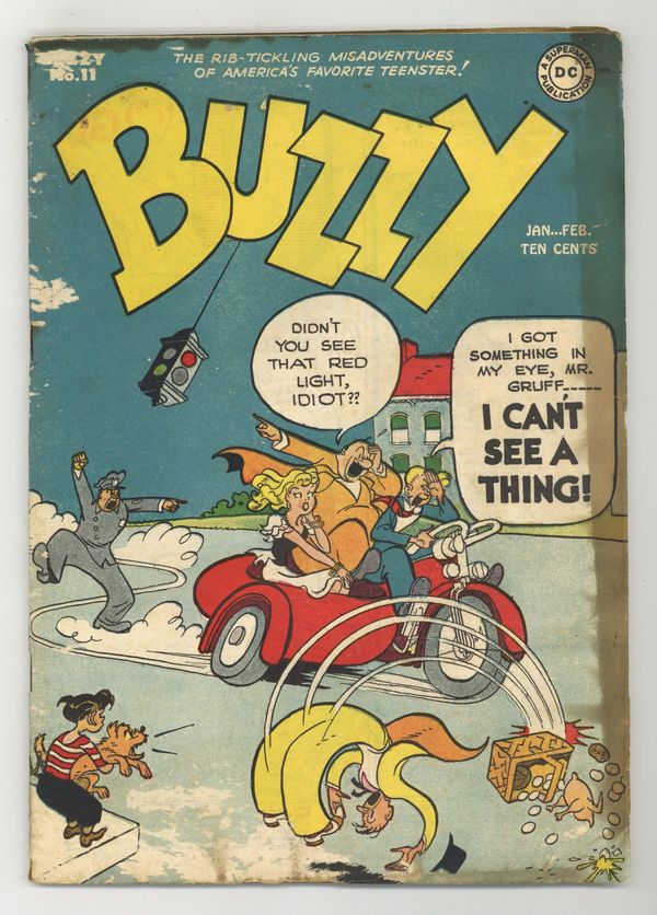 Cover art by George Storm. Untitled story, art by George Storm; Buzzy and Susie follow Mr. Gruff to a shipboard meeting to bring his forgotten briefcase, and Buzzy nearly ends up sinking the ship. Untitled Alix in Folly-Land story, art by Tom McNamara; Alix and his uncle watch what happens to a boy and his kite. . Untitled story, art by George Storm; Wolfert and Alvin both get the idea to dress up as policemen to scare Buzzy off so that they can date Susie. Jerry the Jittterbug humor page by Henry Boltinoff. Shorty humor two-pager. 52 Pages, Full Color. Cover price $0.10.
