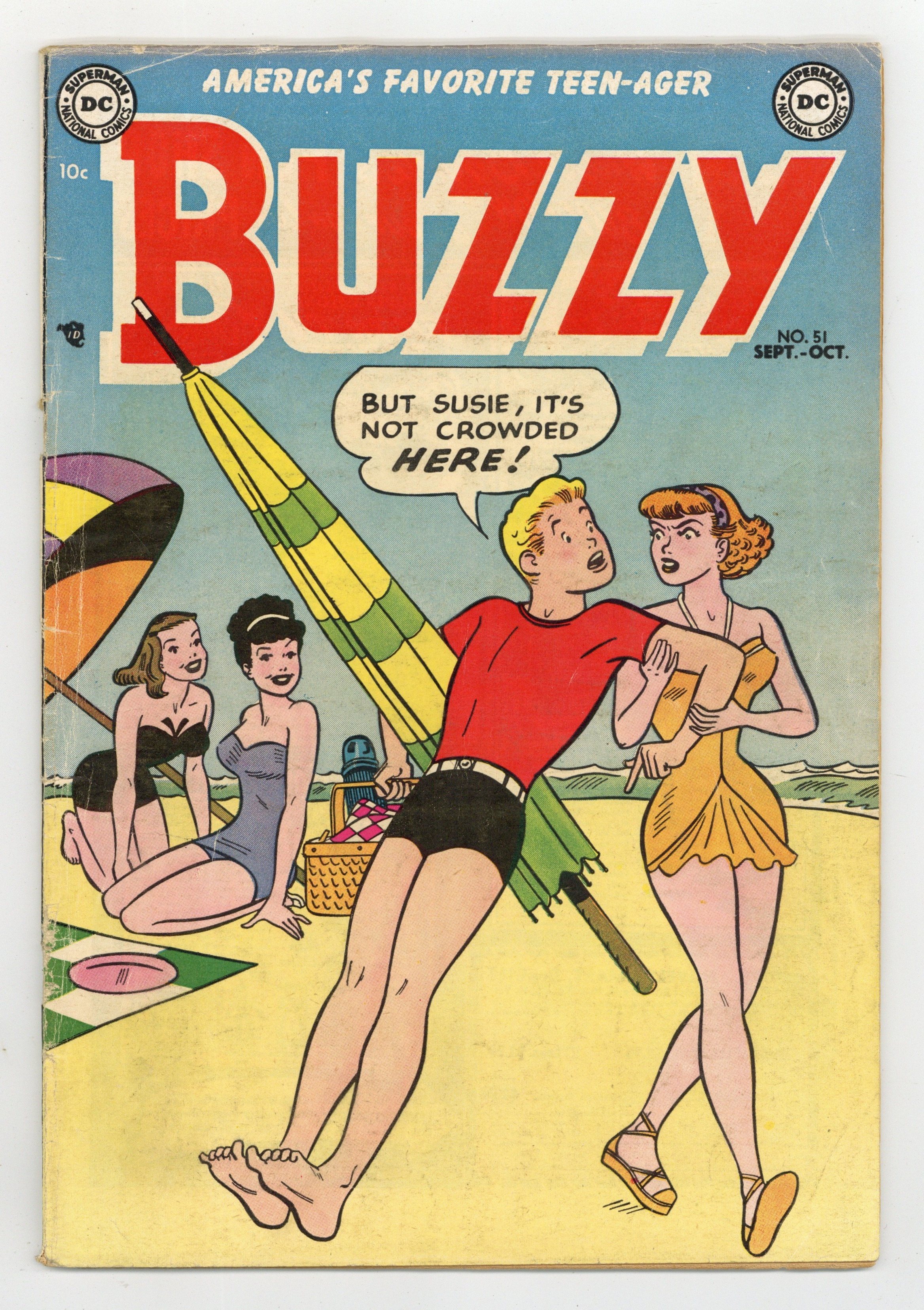 $23.00Cover art by Graham Place. A Street Car Named Perspire, art by Graham Place; Wolfie tells Susie Buzzy has a part in the show; He's an usher. Jerry the Jitterbug humor page by Henry Boltinoff. Ice Show at Cupcake Coliseum, art by Graham Place; Buzzy and Susie try to raise money so they can go to the Ice Show. Trip Tips--The Fittin' Thing, art by Mort Drucker. Untitled story, art by Graham Place; Buzzy bumps his head and dreams he's back in colonial times. How Safe Is Your Driving public service announcement, script by Jack Schiff, art by Win Mortimer. Buzzy's Parakeet, art by Graham Place. 44 Pages, Full Color. Cover price $0.10.