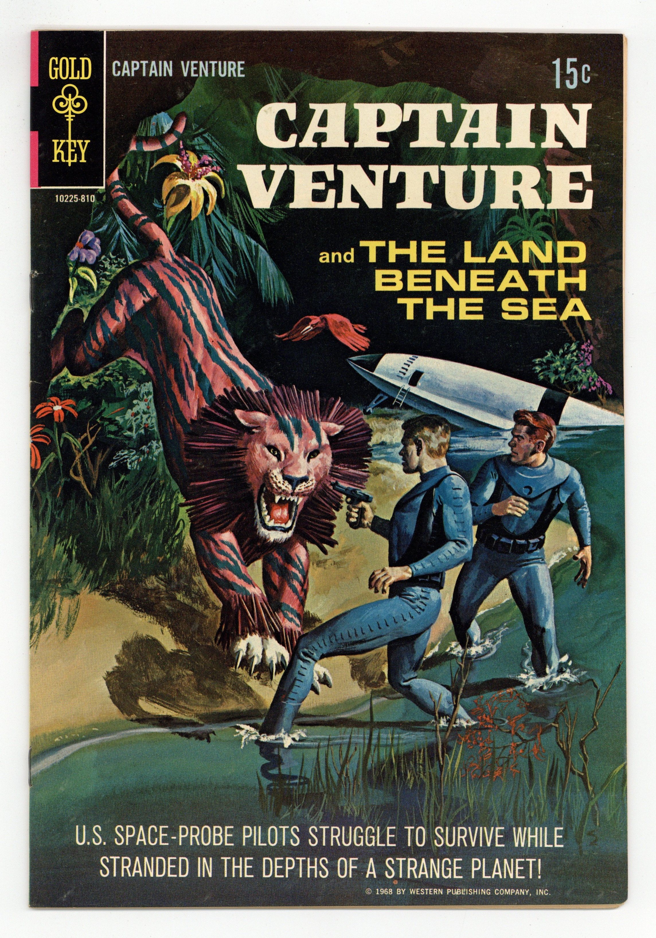 Number on cover is 10225-810. "Land Beneath the Sea" - Written by Gaylord Du Bois. Art by Dan Spiegle. Painted cover. U.S. space-probe pilots struggle to survive while stranded in the depths of a strange planet! 32 pages, full color. Cover price $0.15.
