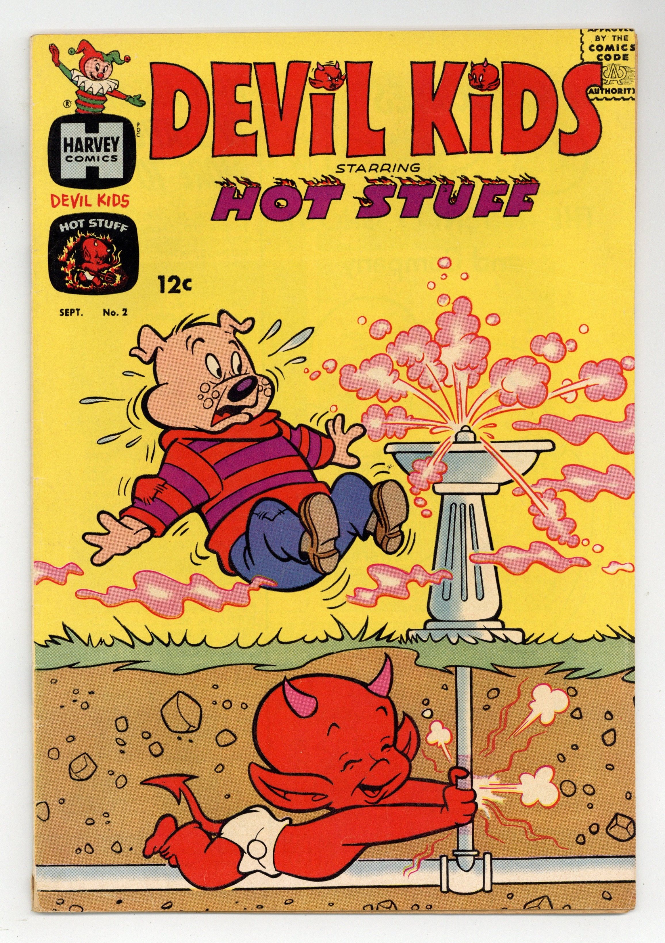 Cover art by Warren Kremer. Trapland; Hot Stuff goes through a door that leads to a forest filled with dangerous traps. Uncle Slow Burn; Hot Stuff meets an uncle who takes everything so calmly he doesn't burn hot like other devils. The Tuff Egg; Hot Stuff goes to buy some eggs for breakfast but he meets an egg with a steel shell that doesn't want to be eaten. Colossa starring Stumbo the Giant, art by Warren Kremer. 36 pages, full color. Cover price $0.12.